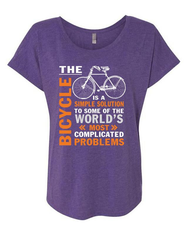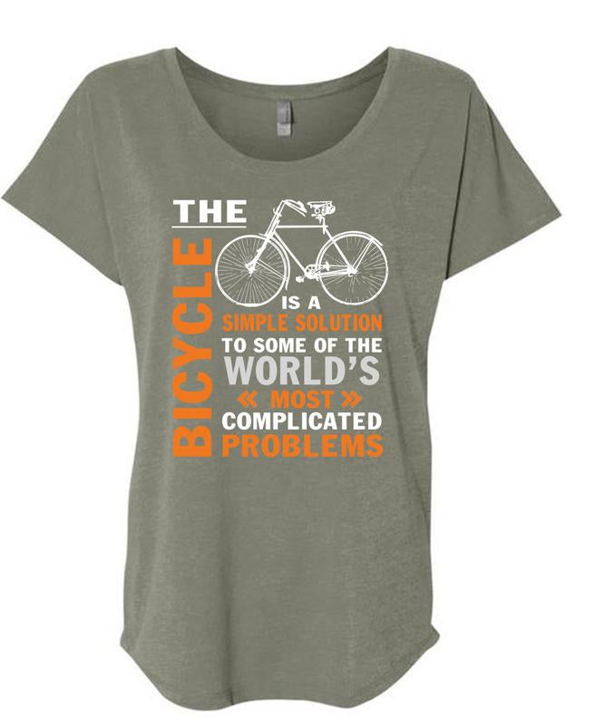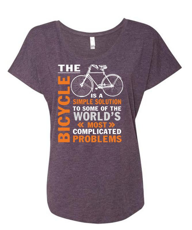 The Bicycle Is A Simple Solution T Shirt, I Love Biking T Shirt, Cool Shirt (Ladies' Triblend Dolman Sleeve)