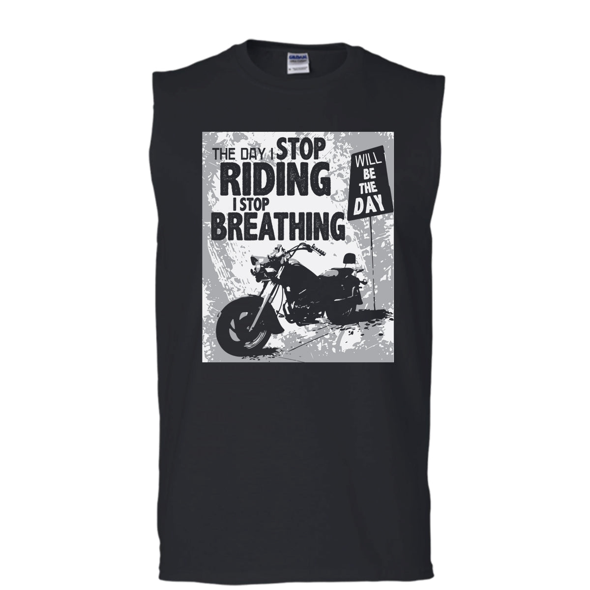 The Day Stop Riding T Shirt, Will Be The Day I Stop Breathing T Shirt, Cool T Shirt (Men's Cotton Sleeveless)