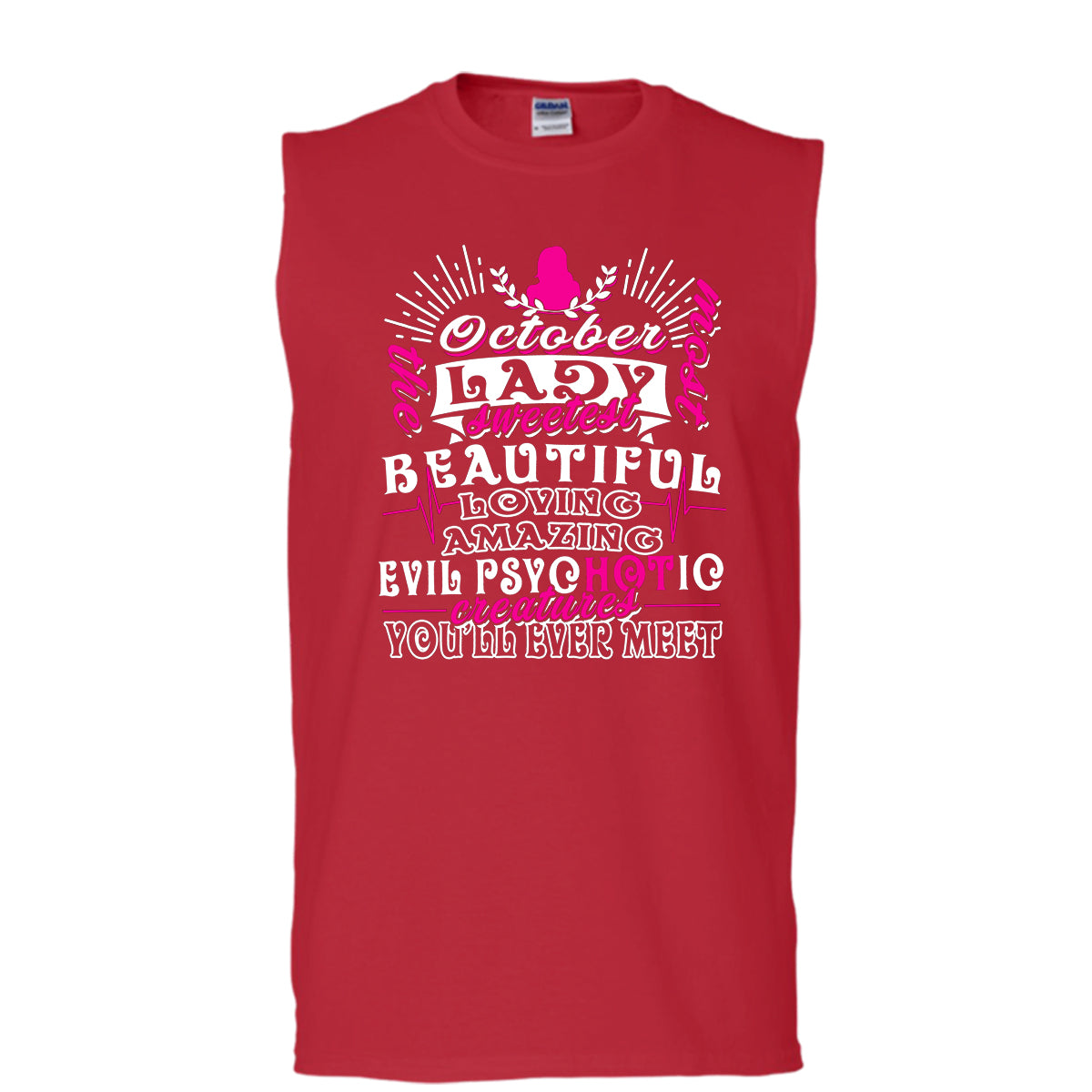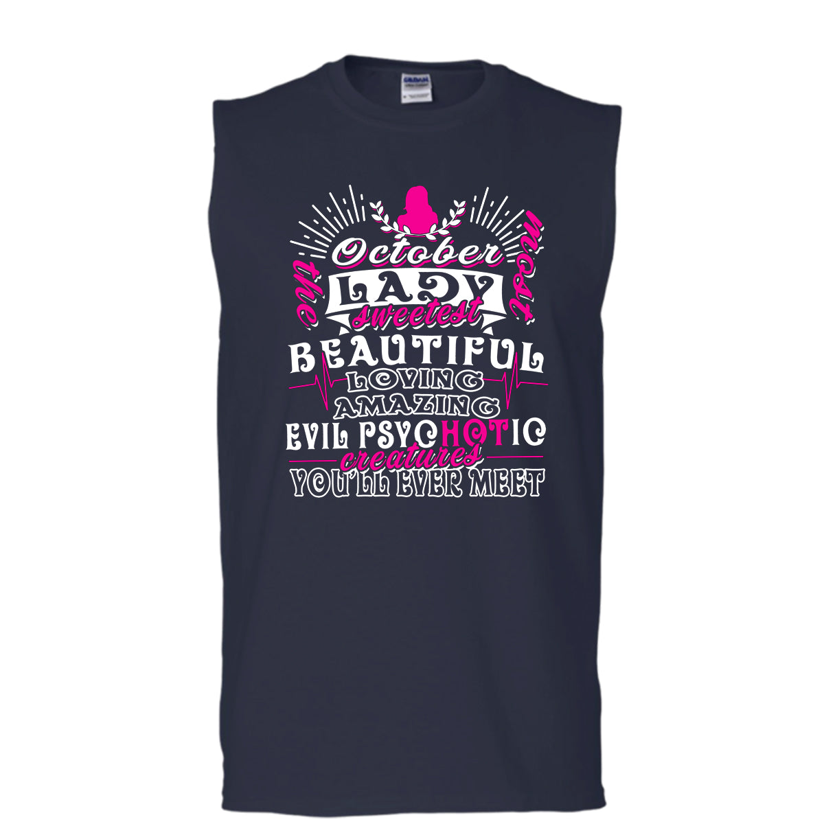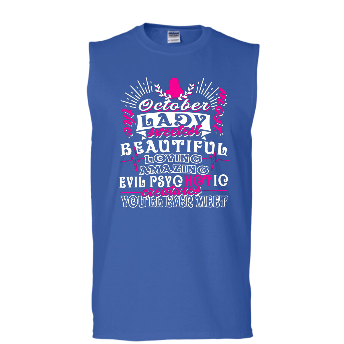 The Most Sweetest October Lady T Shirt, Evil Psychotic Creatures T Shirt, Cool T Shirt (Men's Cotton Sleeveless)