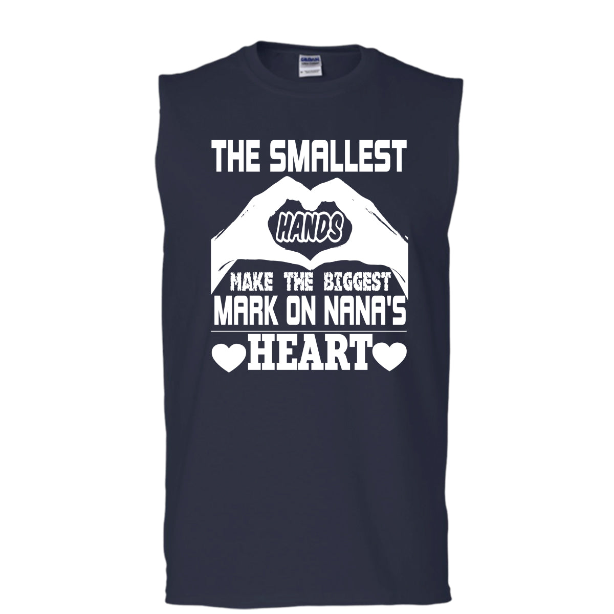 The Smallest Hands T Shirt, The Biggest Mark On Nana's Heart T Shirt, Cool T Shirt (Men's Cotton Sleeveless)