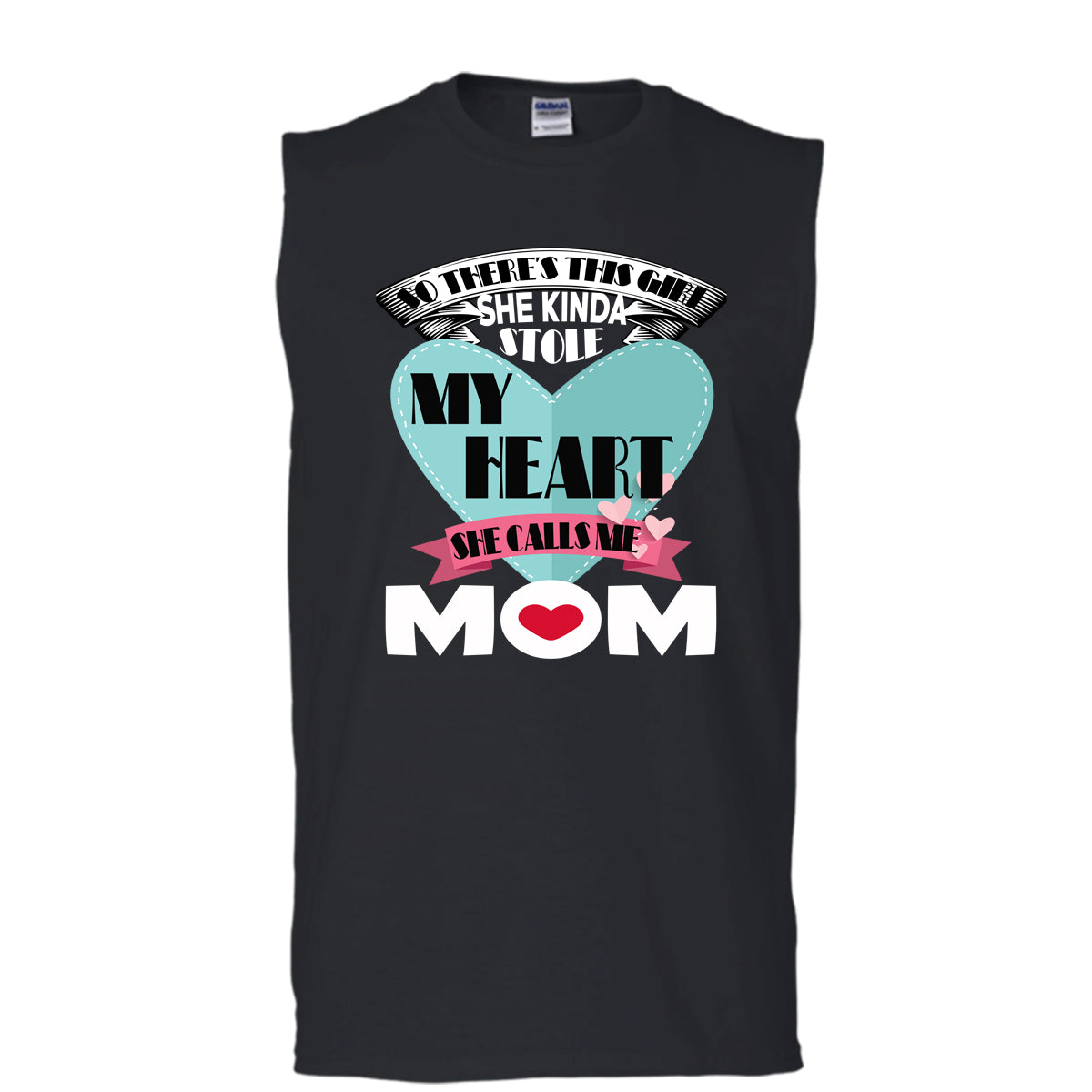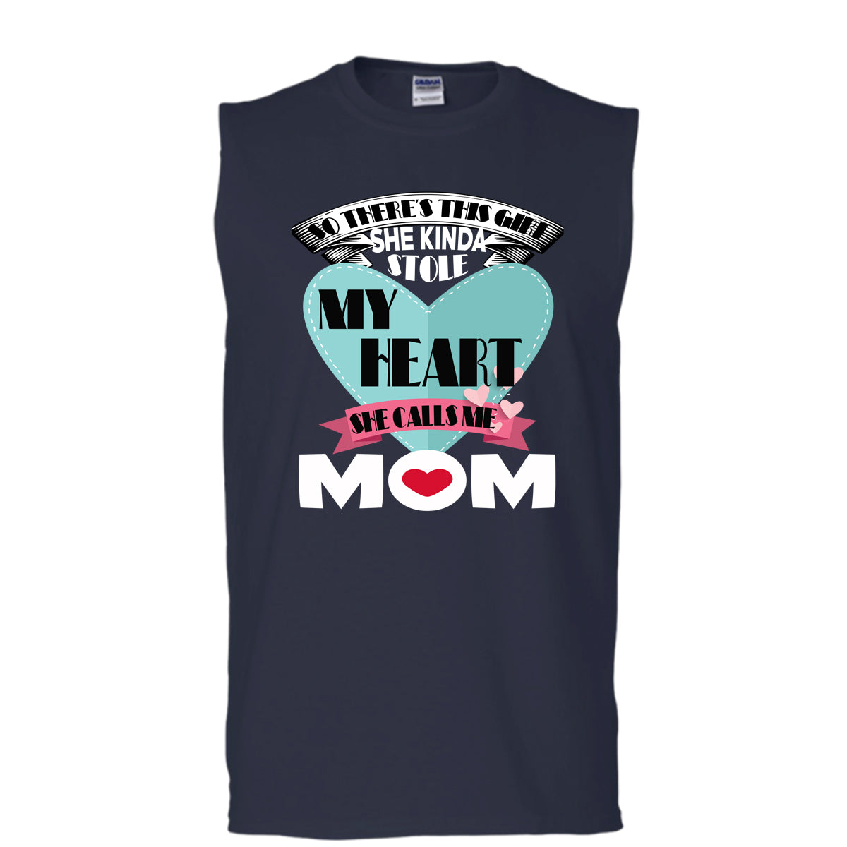 There's This Girl She Kinda Stole My Heart T Shirt, She Call Me Mom T Shirt, Cool T Shirt (Men's Cotton Sleeveless)