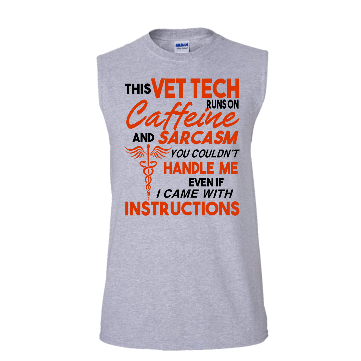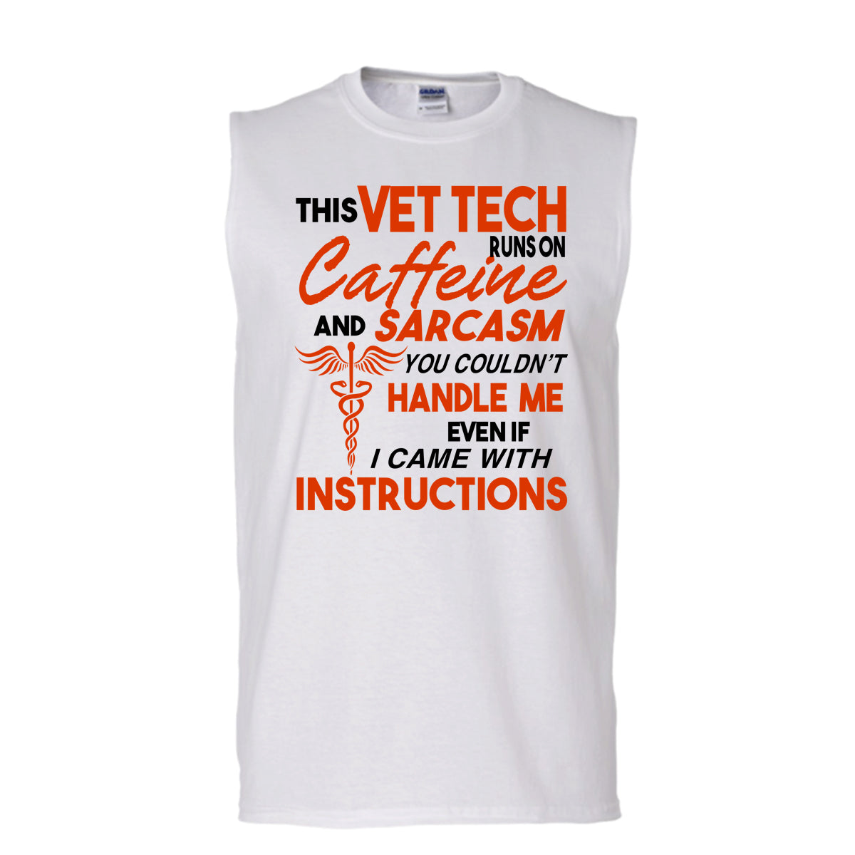This Vet Tech Runs On Caffeine T Shirt, Coolest Vet Tech T Shirt, Awesome t-shirts (Men's Cotton Sleeveless)