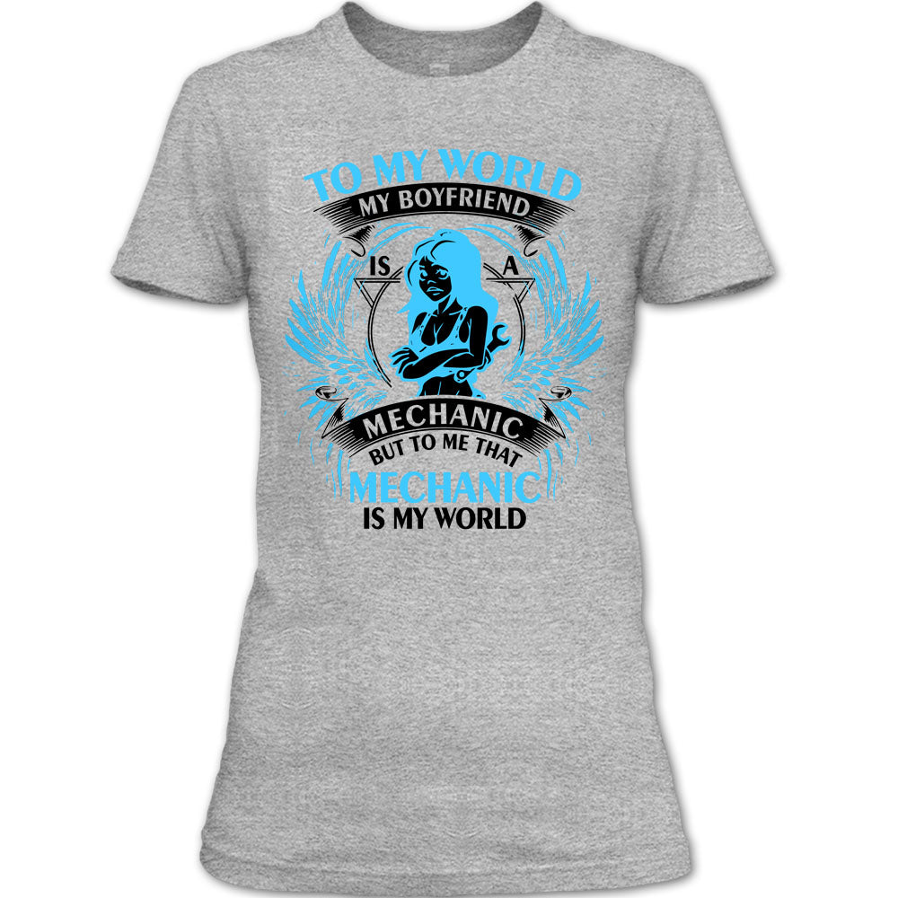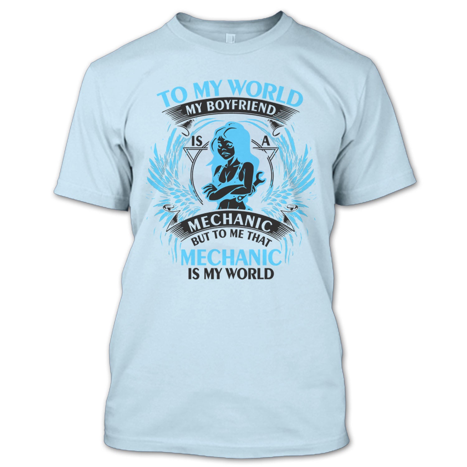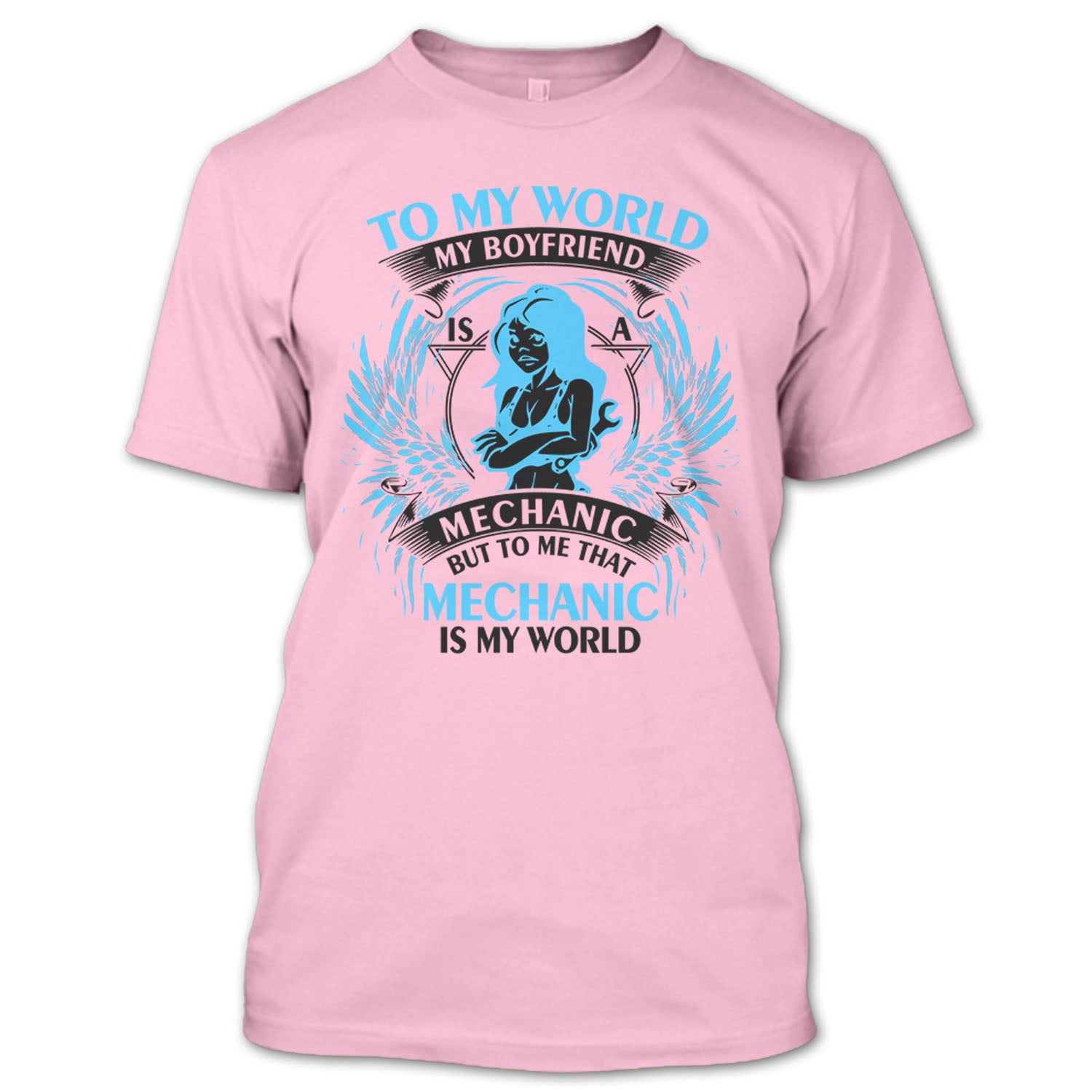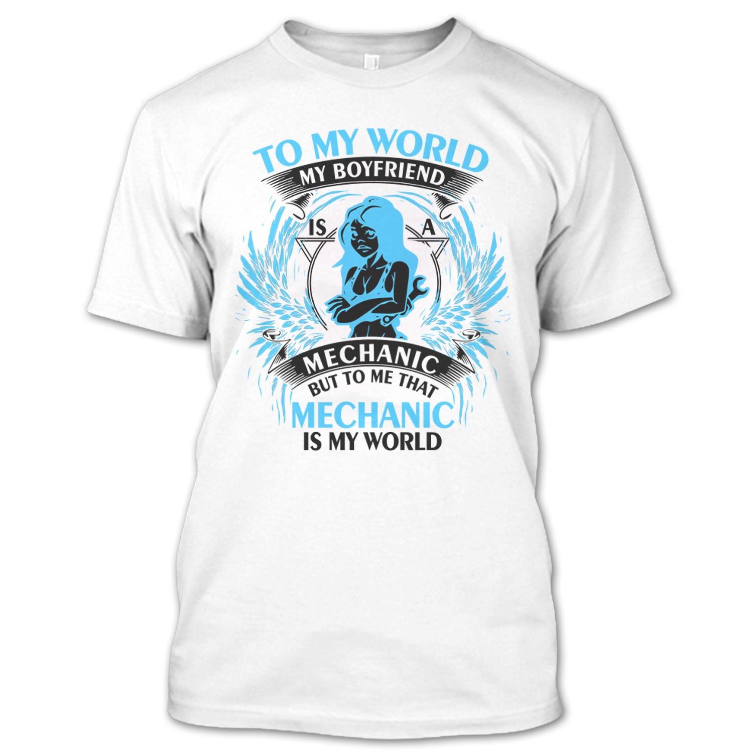 To The World My Boyfriend Is A Mechanic T Shirt, To Me That Mechanic Is My World T Shirt