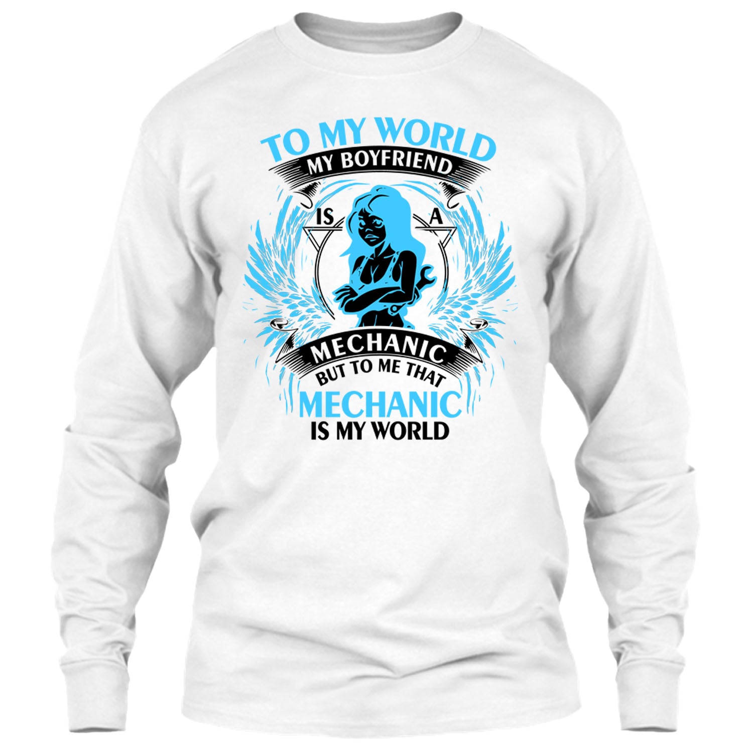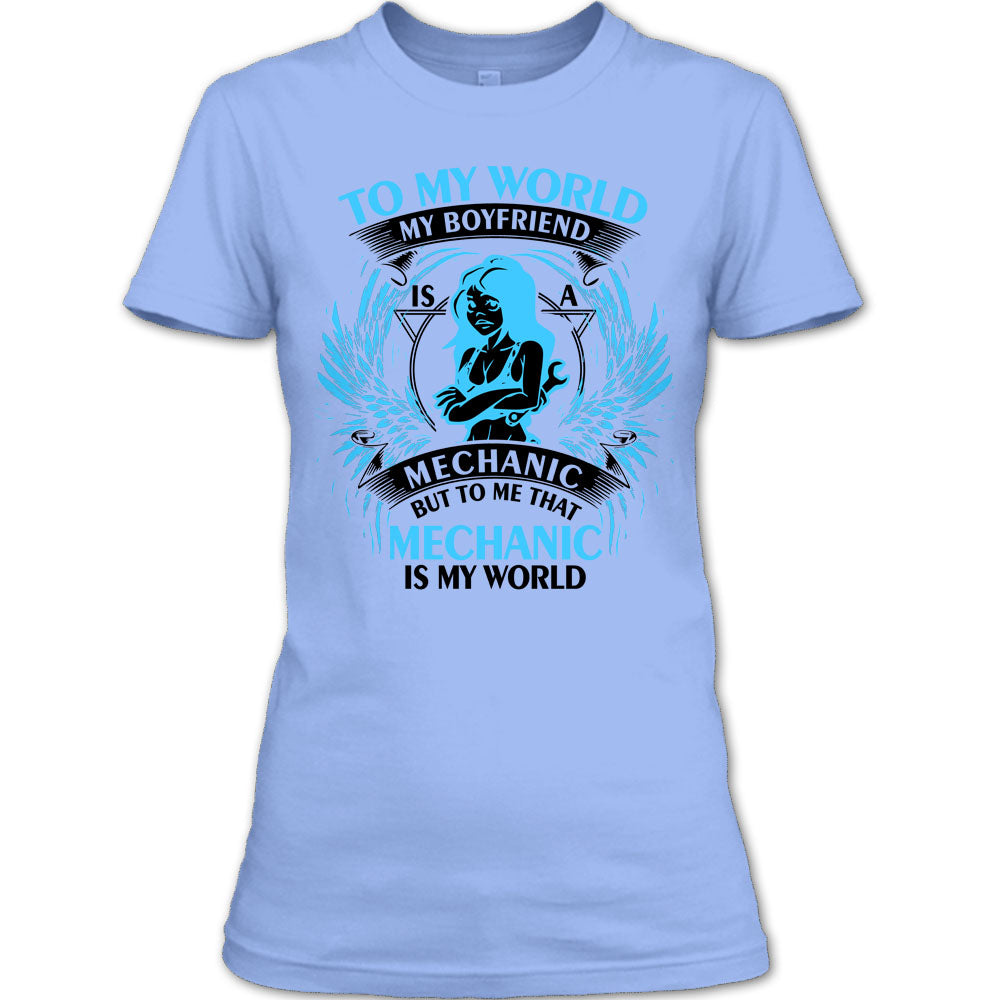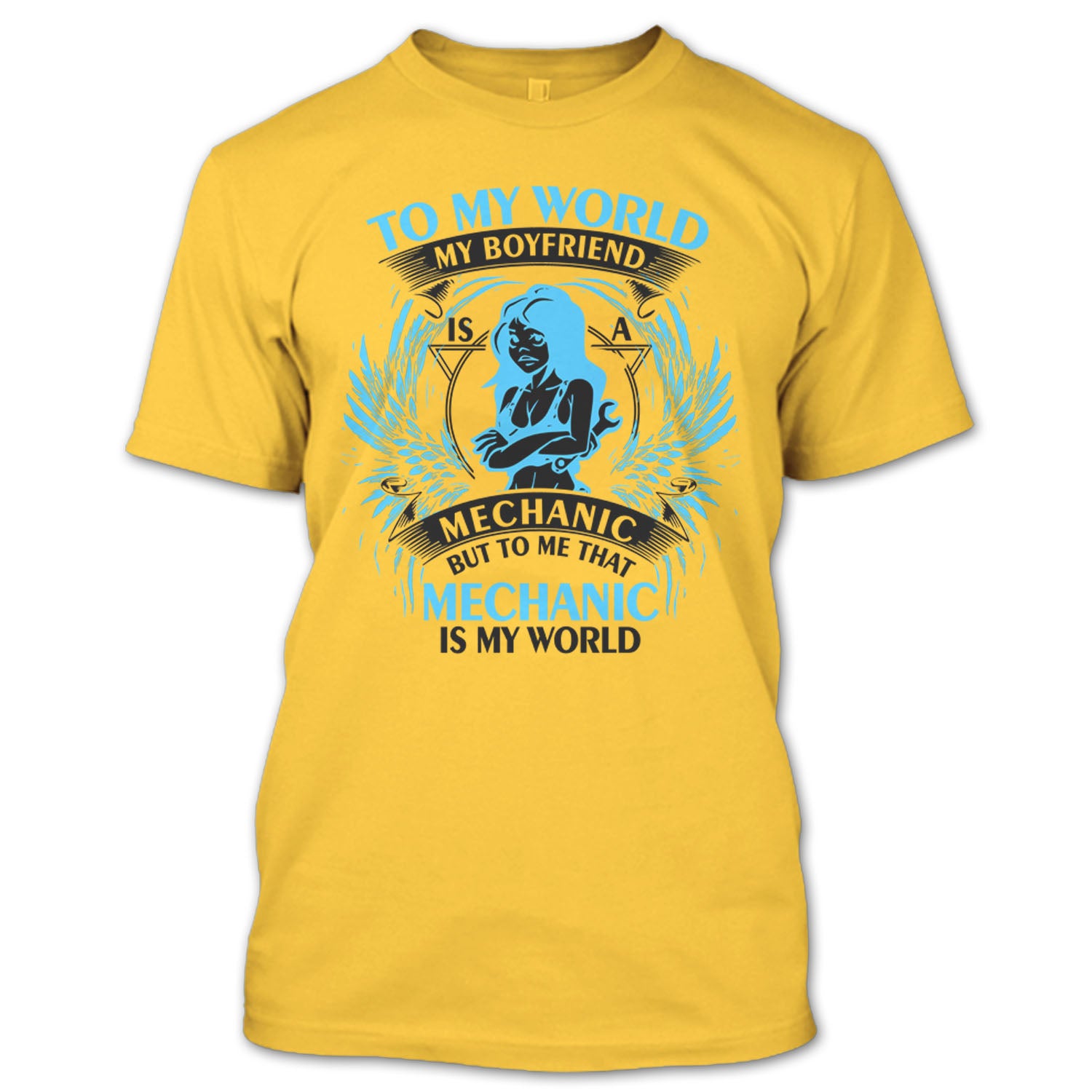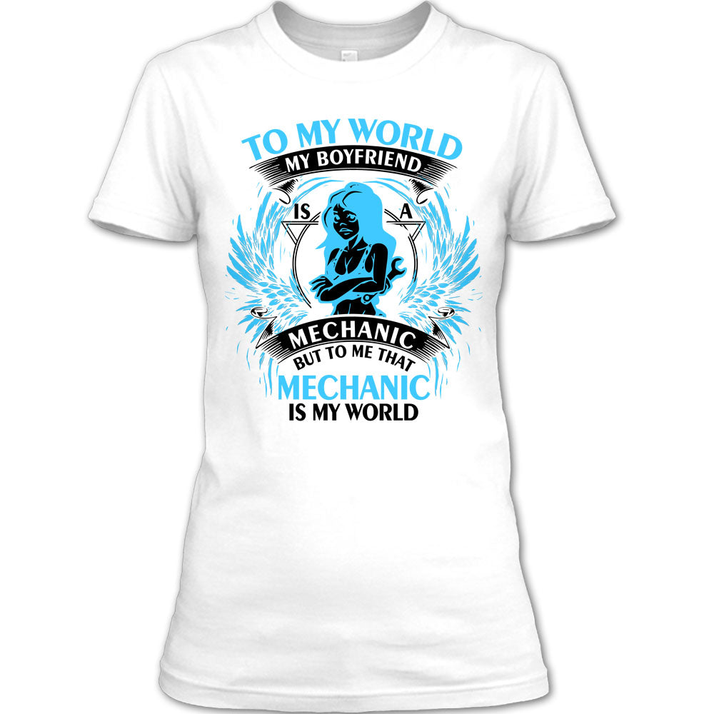 To The World My Boyfriend Is A Mechanic T Shirt, To Me That Mechanic Is My World T Shirt