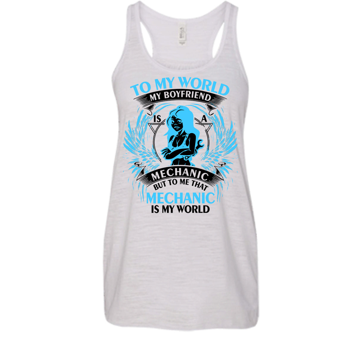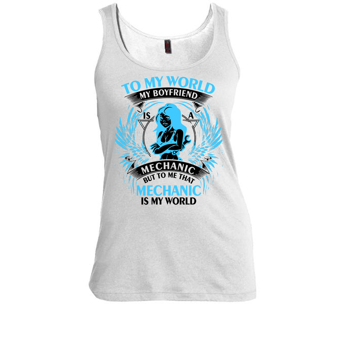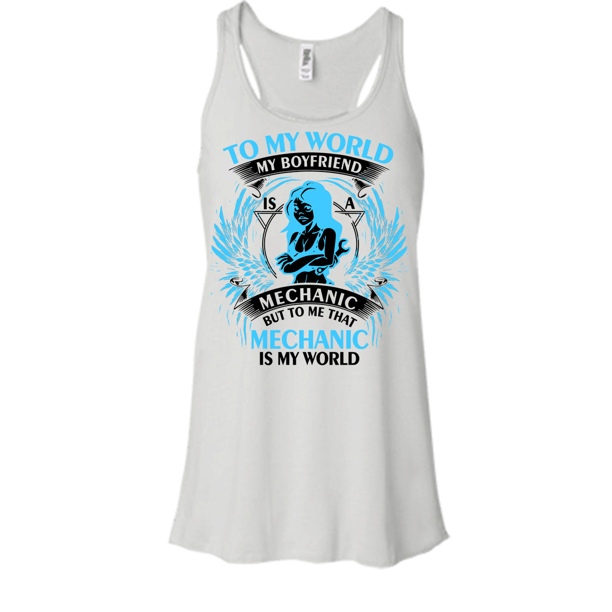 To The World My Boyfriend Is A Mechanic T Shirt, To Me That Mechanic Is My World T Shirt, Awesome t-shirts