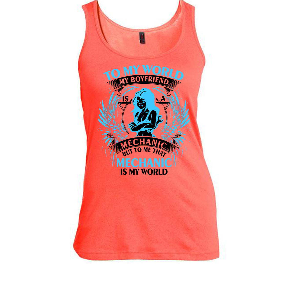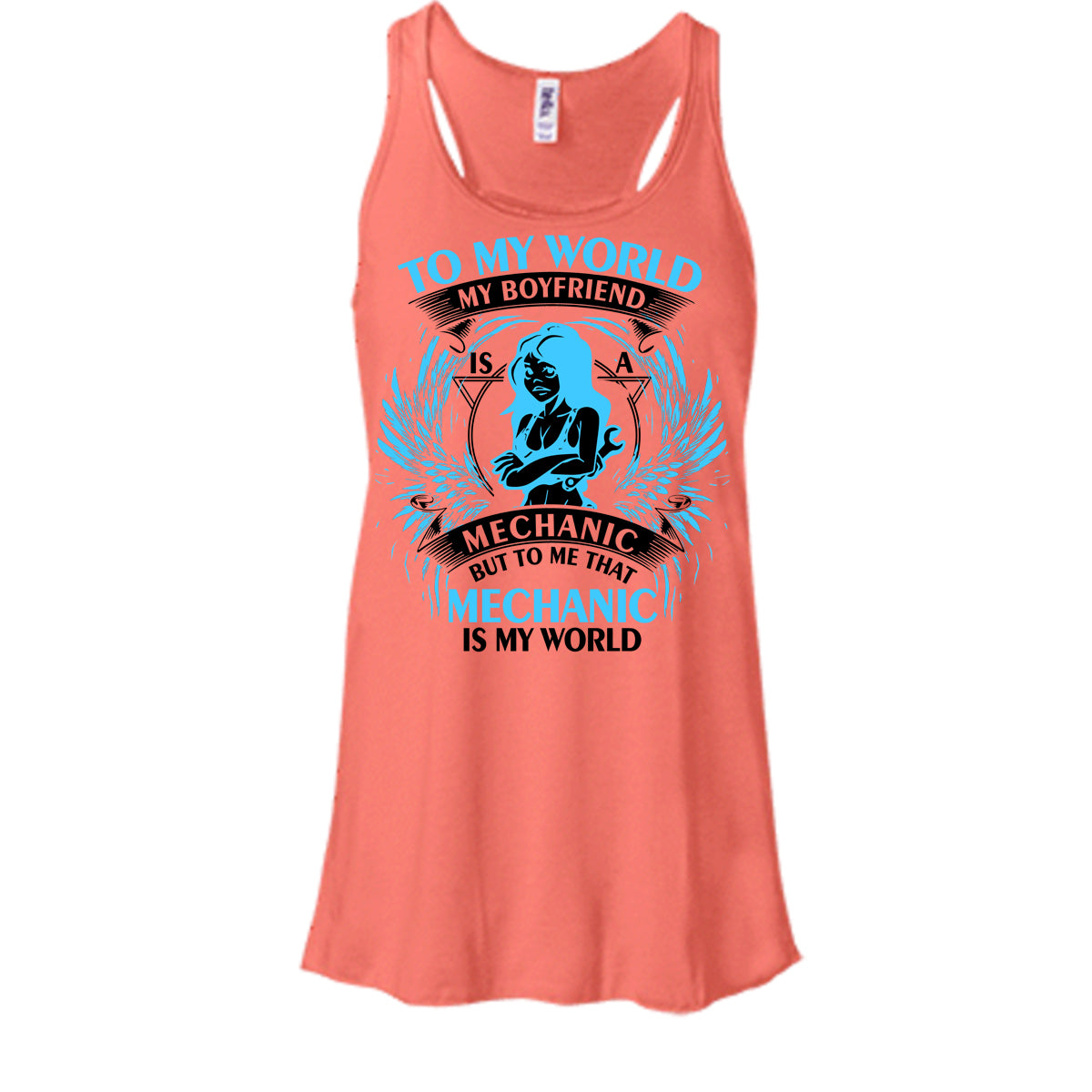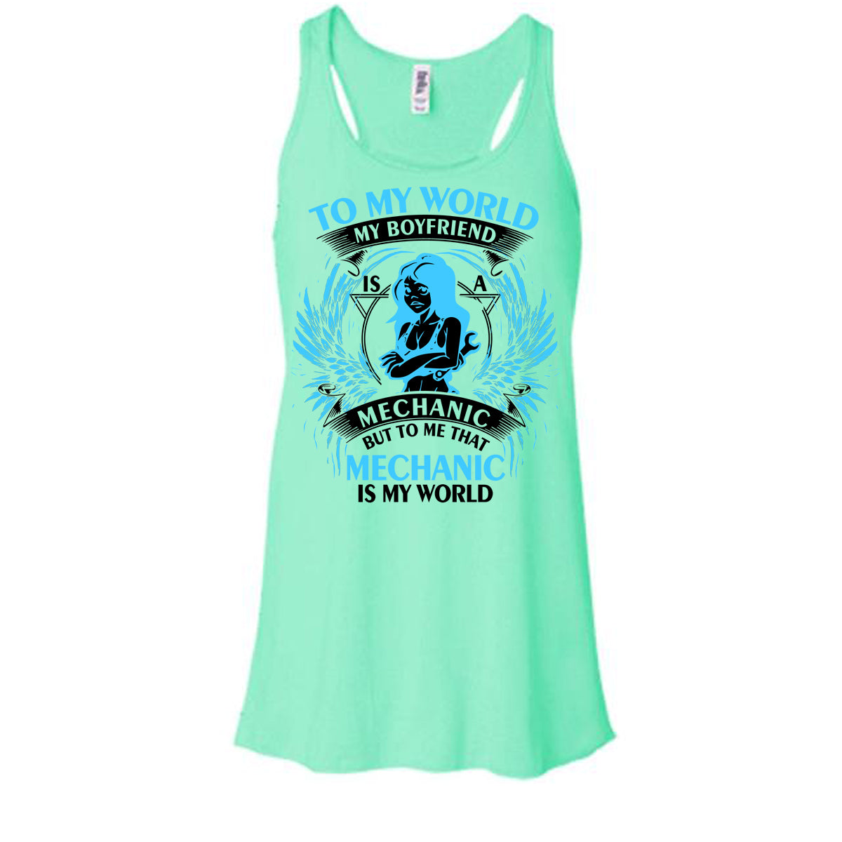 To The World My Boyfriend Is A Mechanic T Shirt, To Me That Mechanic Is My World T Shirt, Awesome t-shirts