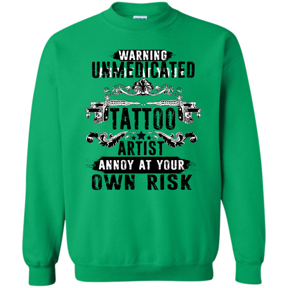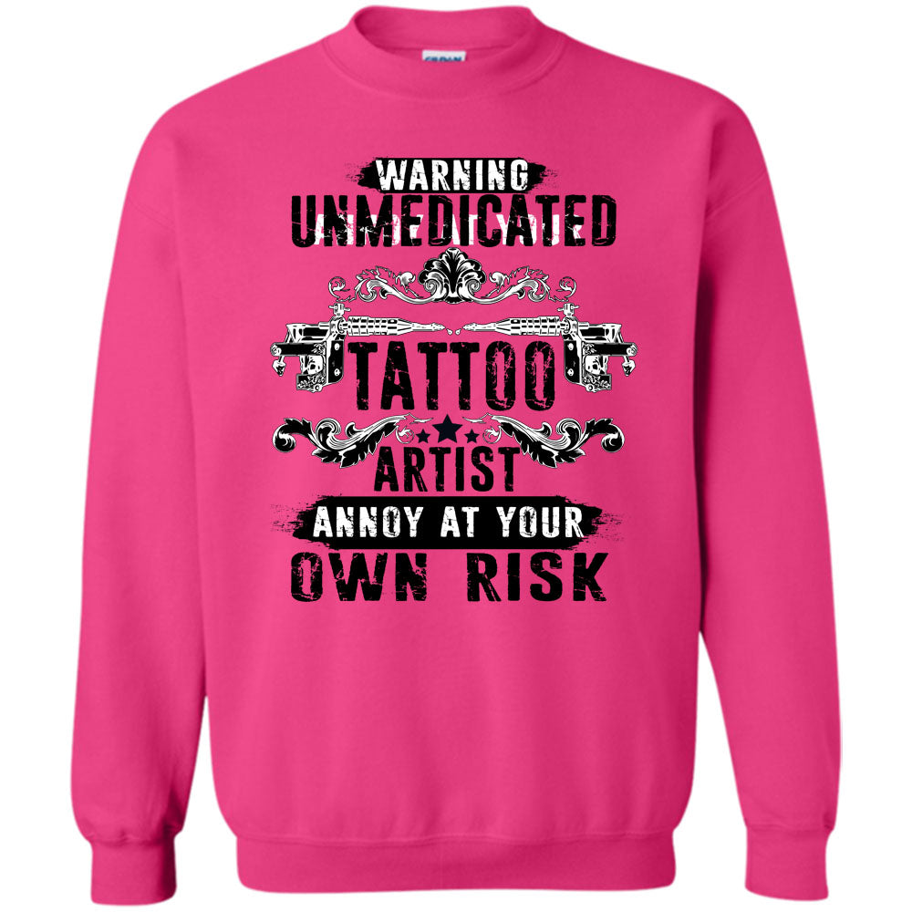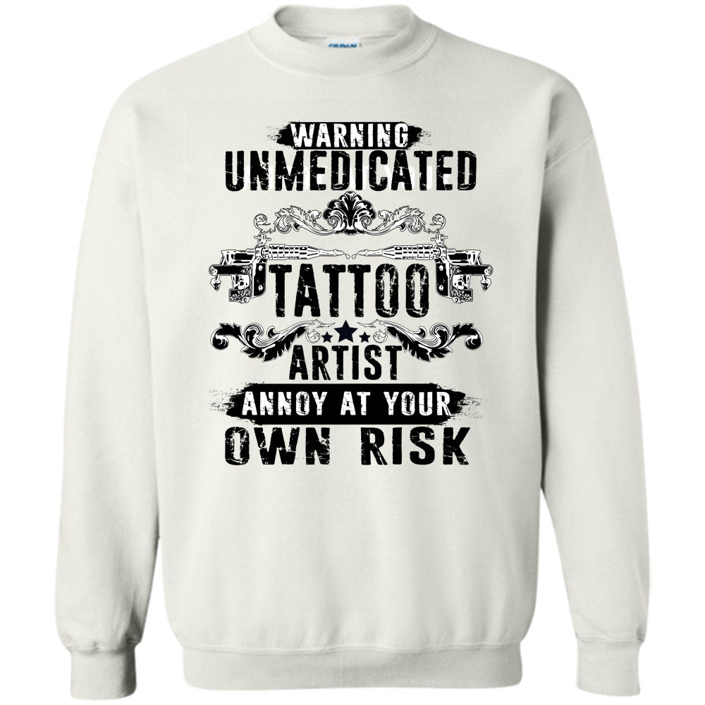Unmedicated Tattoo Artist T Shirt, Warning Unmedicated Tattoo Artist Sweatshirt