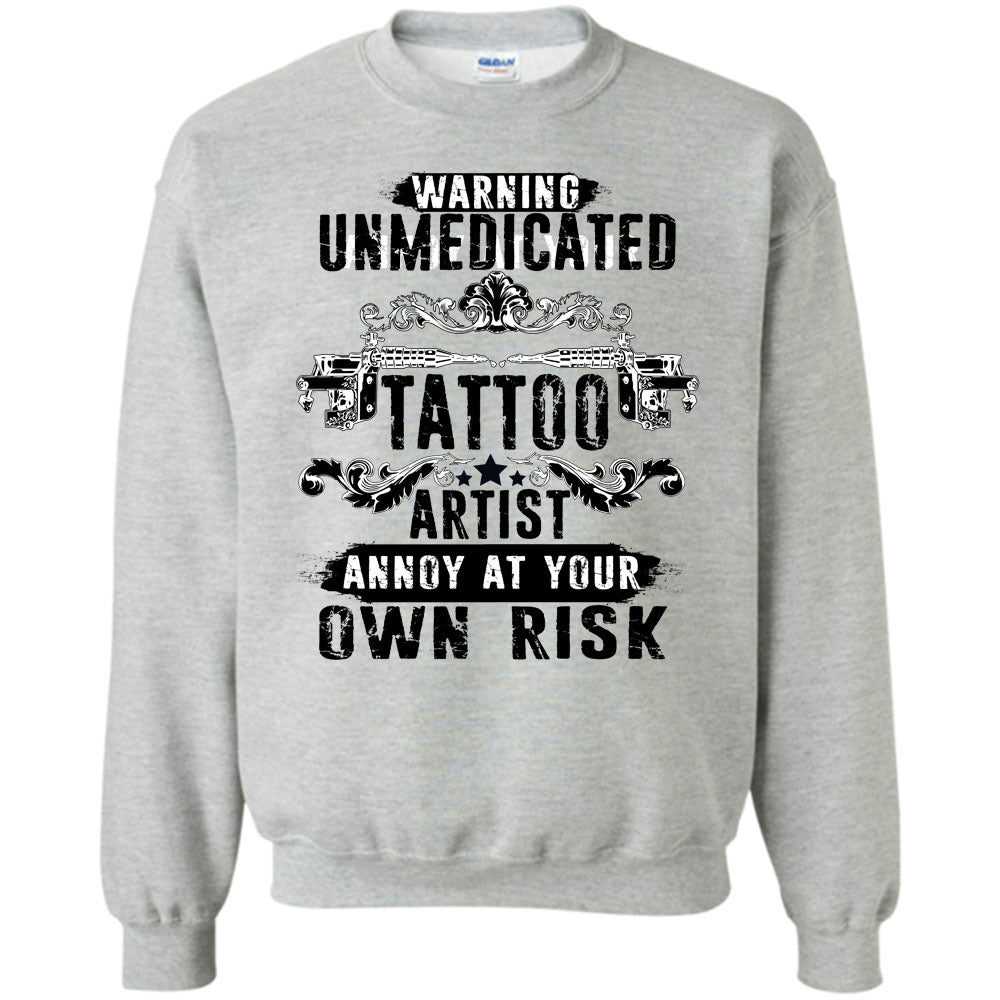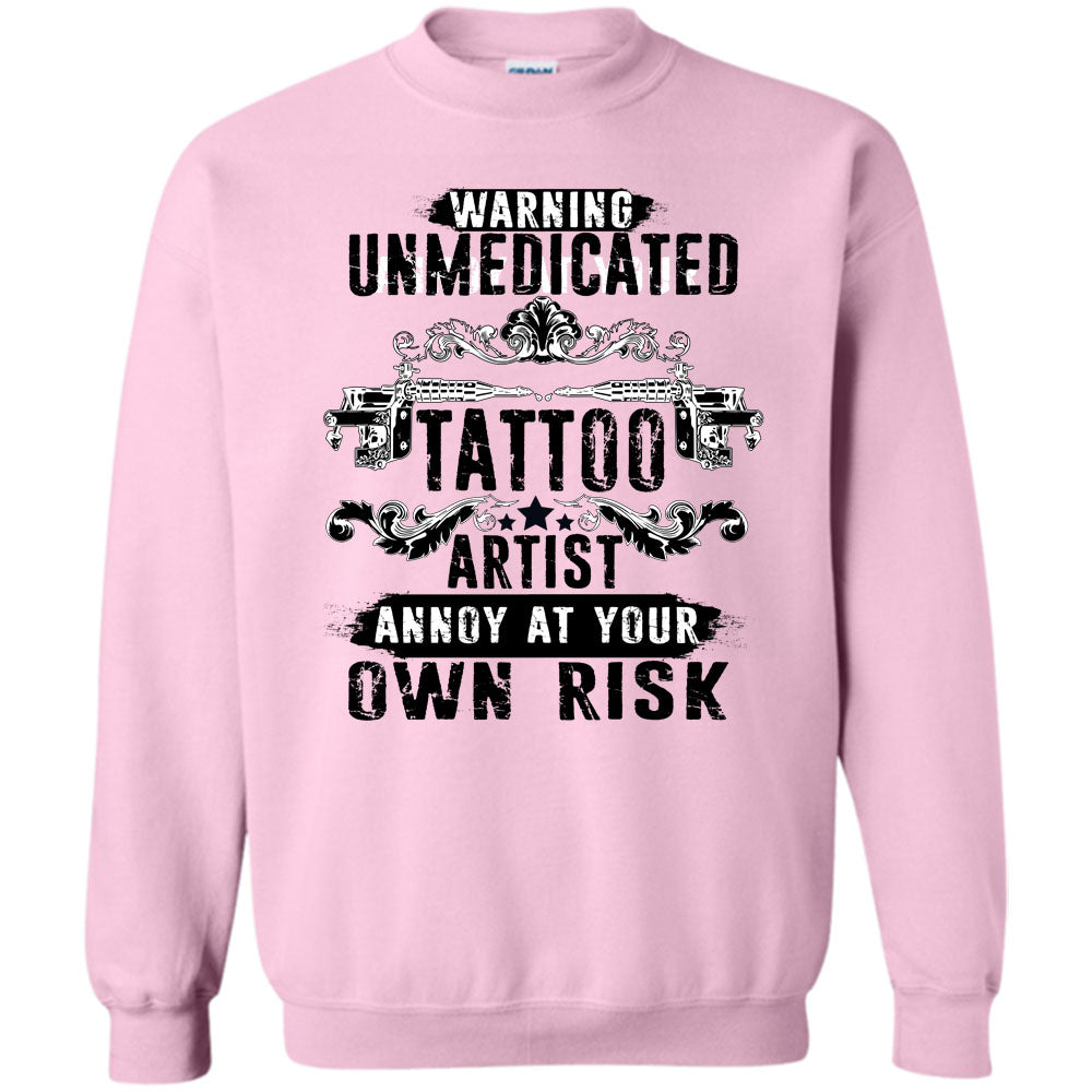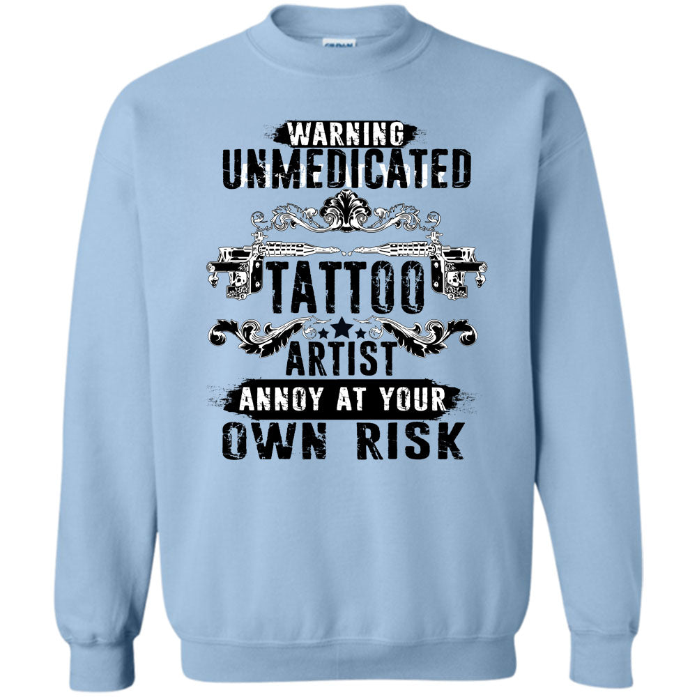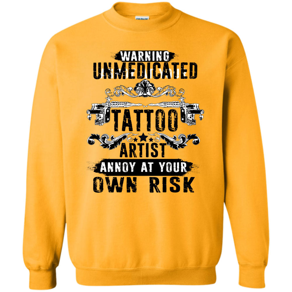 Unmedicated Tattoo Artist T Shirt, Warning Unmedicated Tattoo Artist Sweatshirt