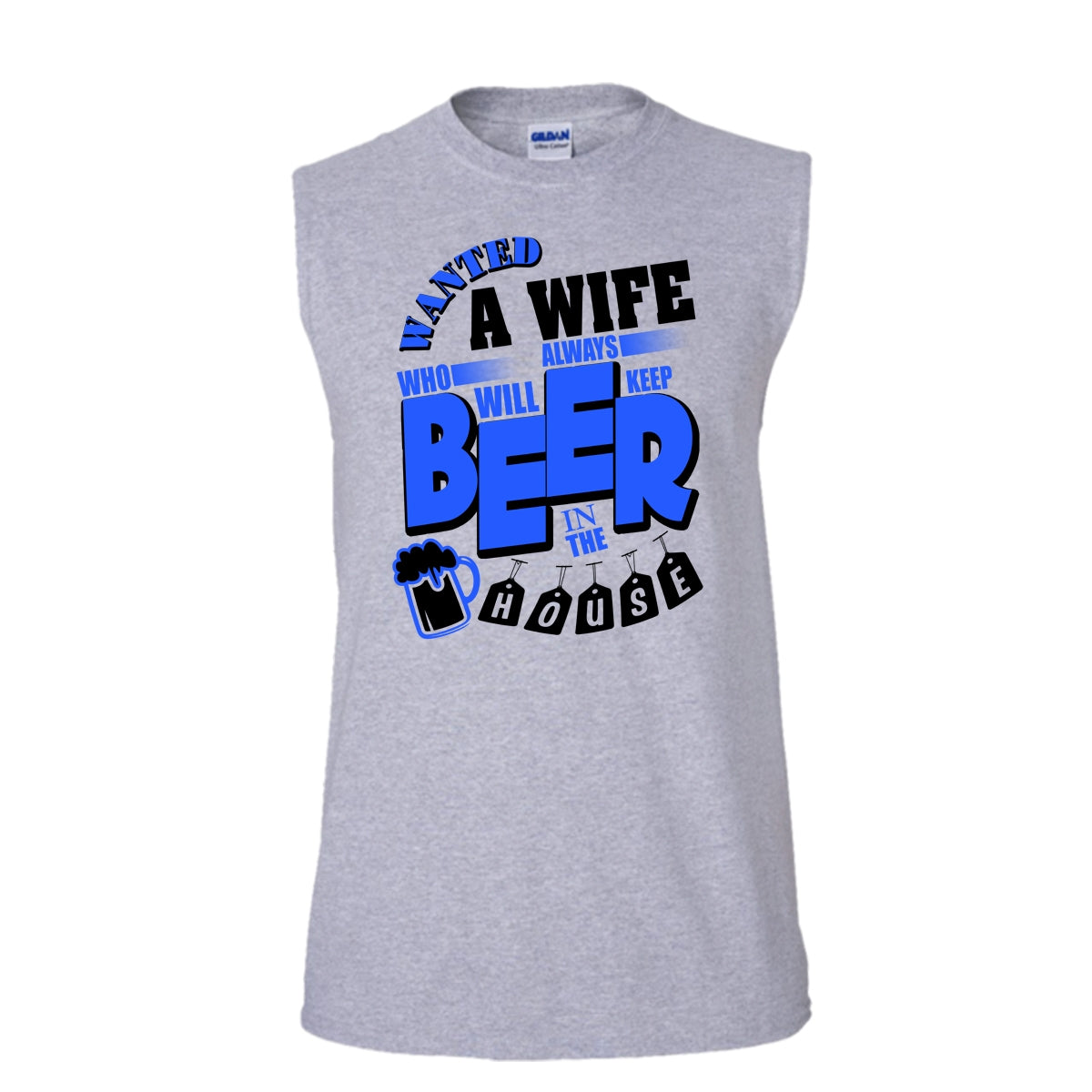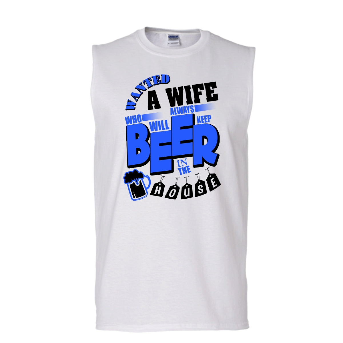 Wanted A Wife T Shirt, Coolest Beer T Shirt, Awesome t-shirts (Men's Cotton Sleeveless)