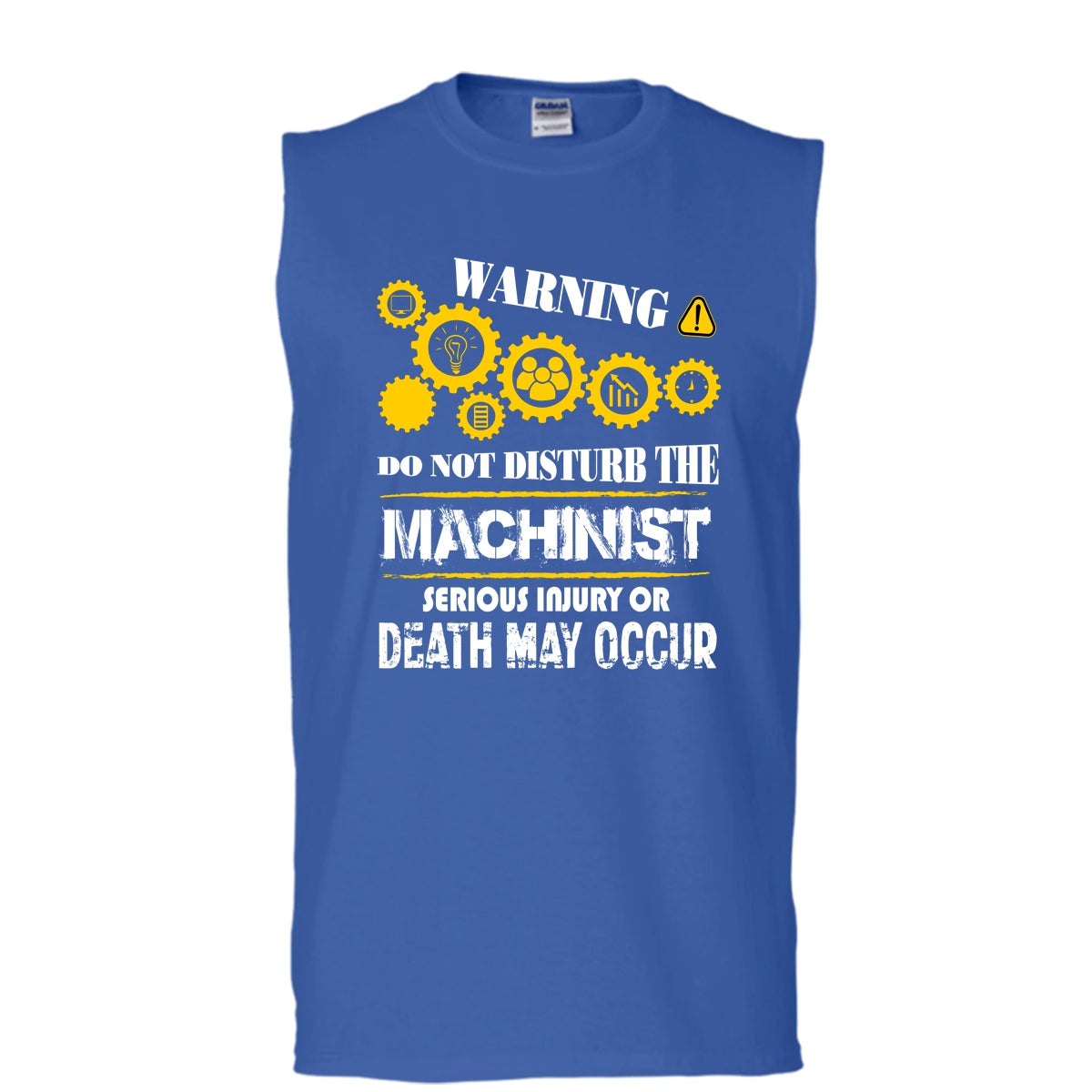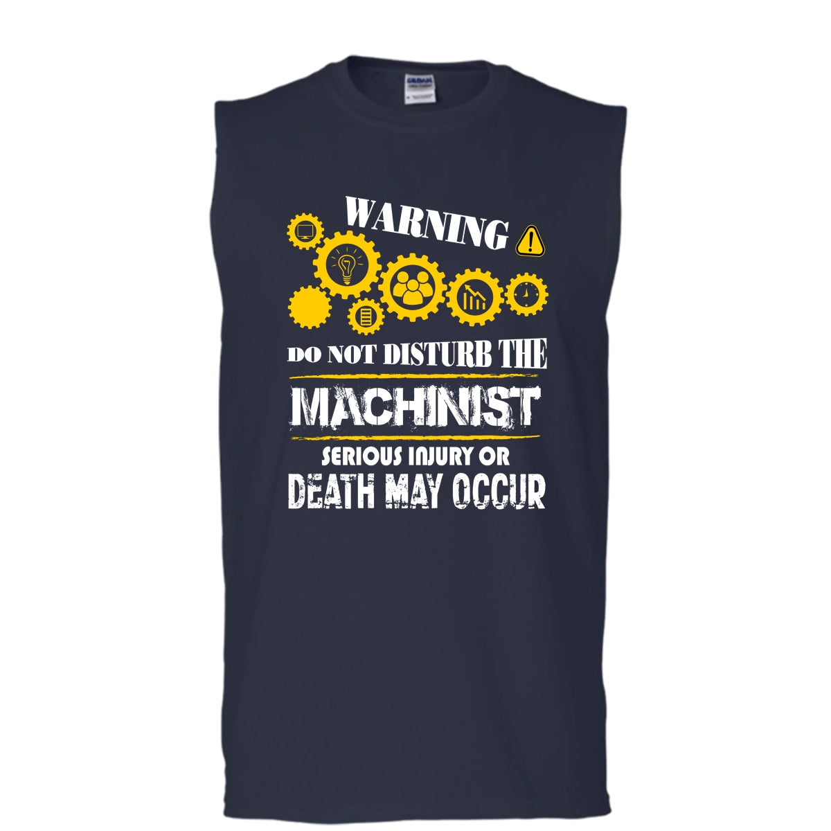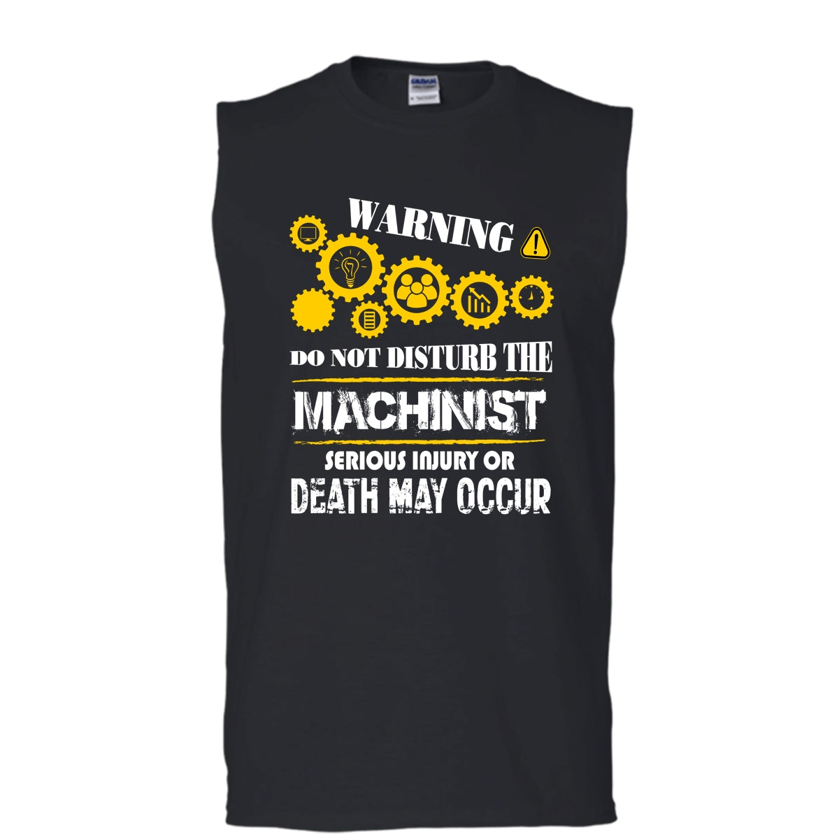 Warning T Shirt, Do Not Disturb The Machinist T Shirt, Cool T Shirt (Men's Cotton Sleeveless)