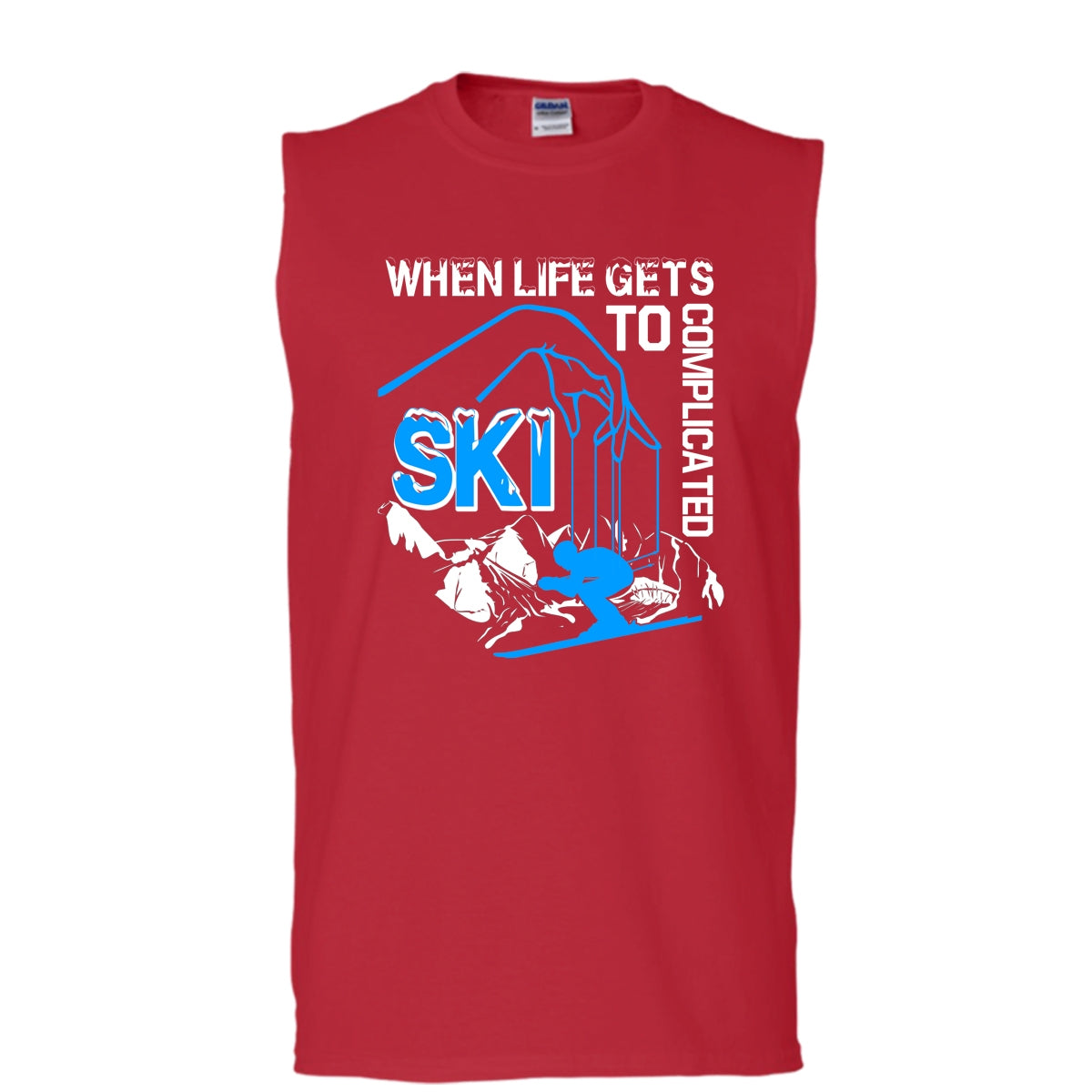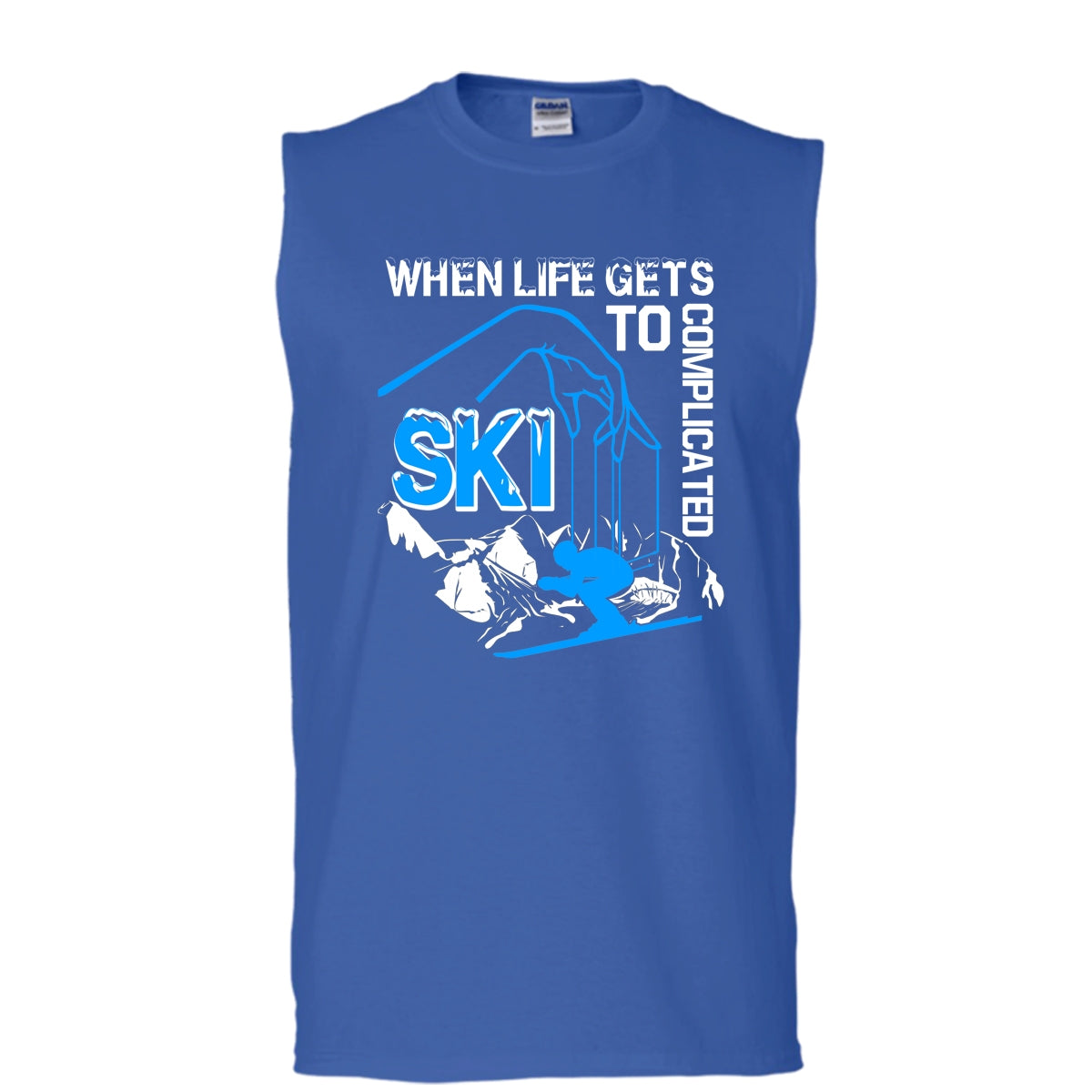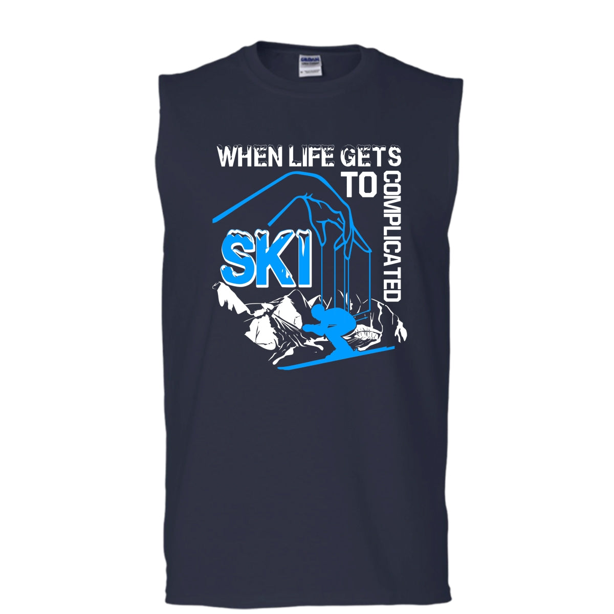 When Life Gets To Complicated Ski T Shirt, Coolest Ski Tank Top (Men's Cotton Sleeveless)