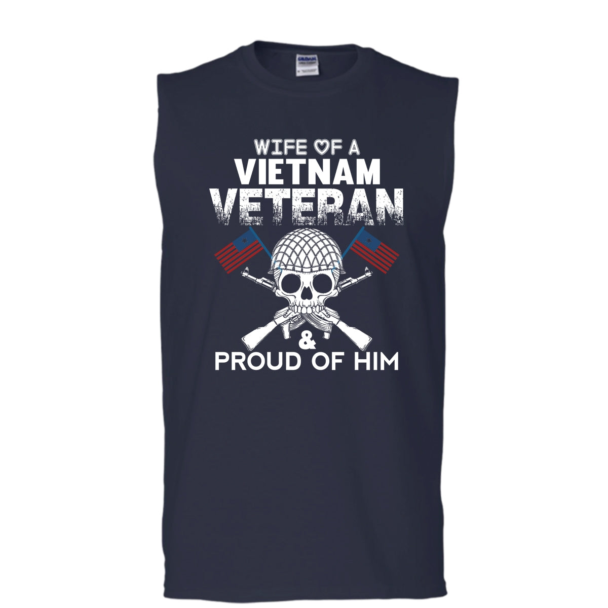 Wife Of A Vietnam Veteran T Shirt, Proud Of Him T Shirt, Cool T Shirt (Men's Cotton Sleeveless)