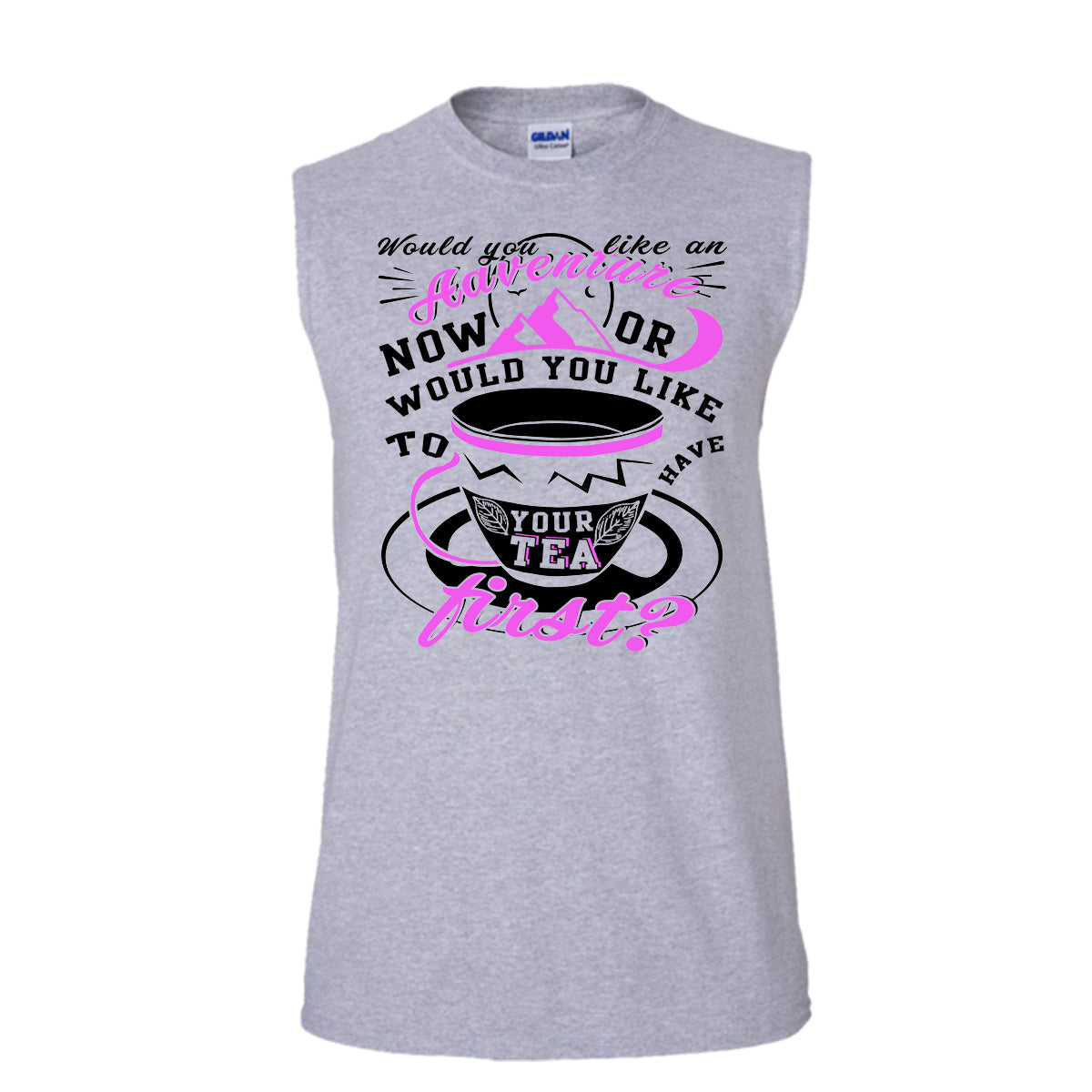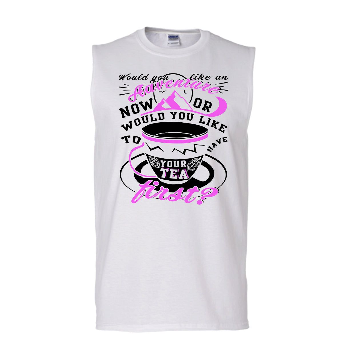 Would You Like An Adventure T Shirt, Would You Like To Have Your Tea T Shirt, Awesome t-shirts (Men's Cotton Sleeveless)