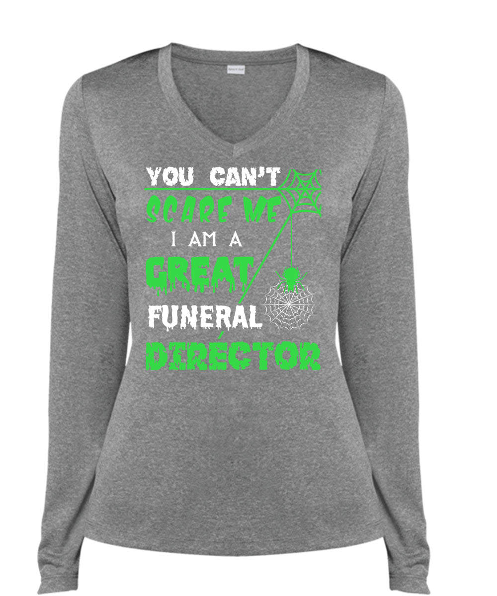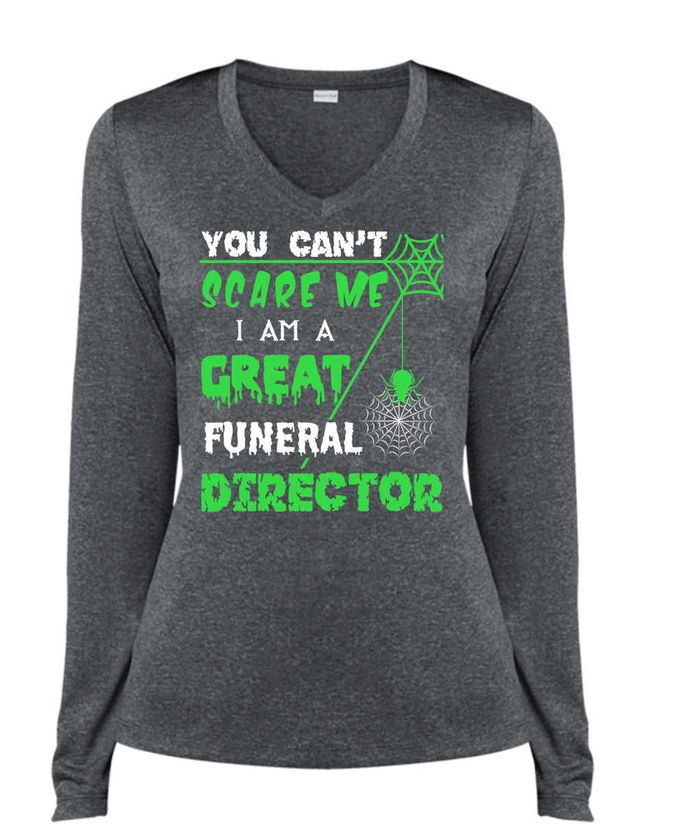 You Can't Scare Me T Shirt, I Am A Great Funeral Director T Shirt, Cool Shirt (Ladies LS Heather V-Neck)