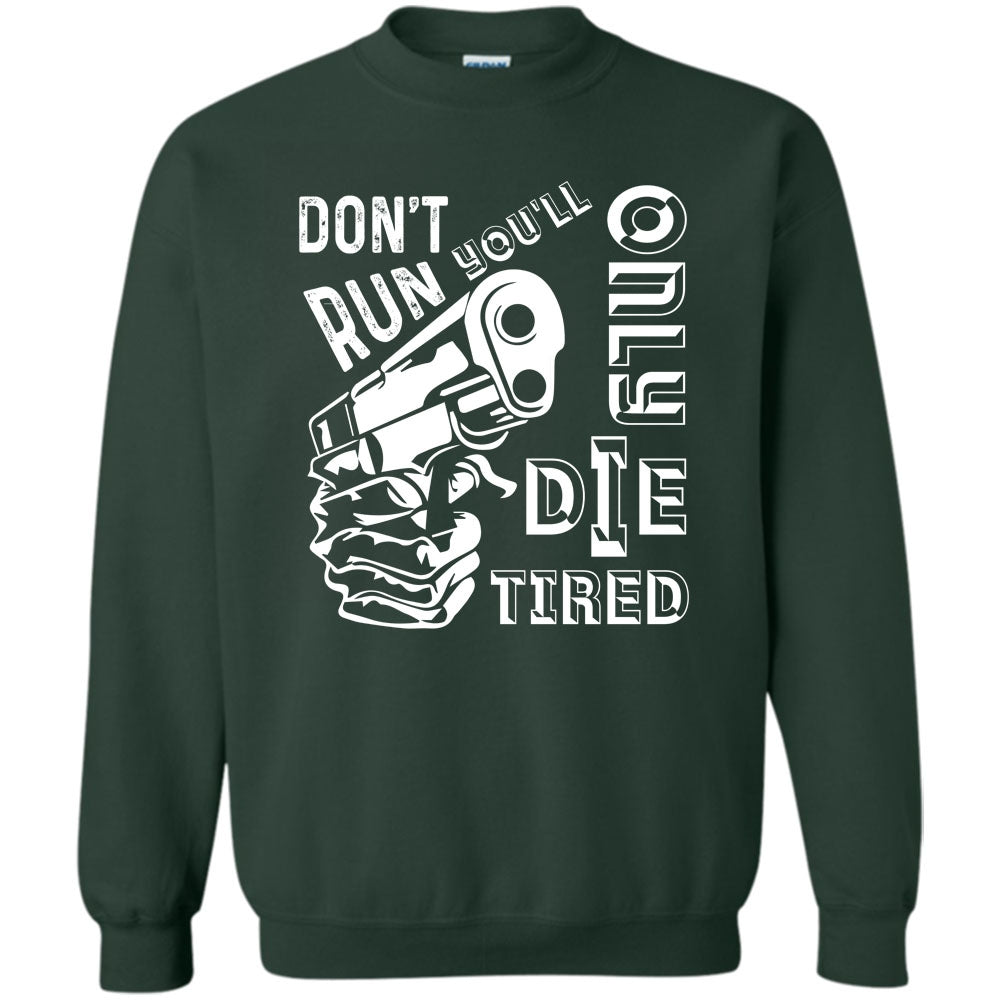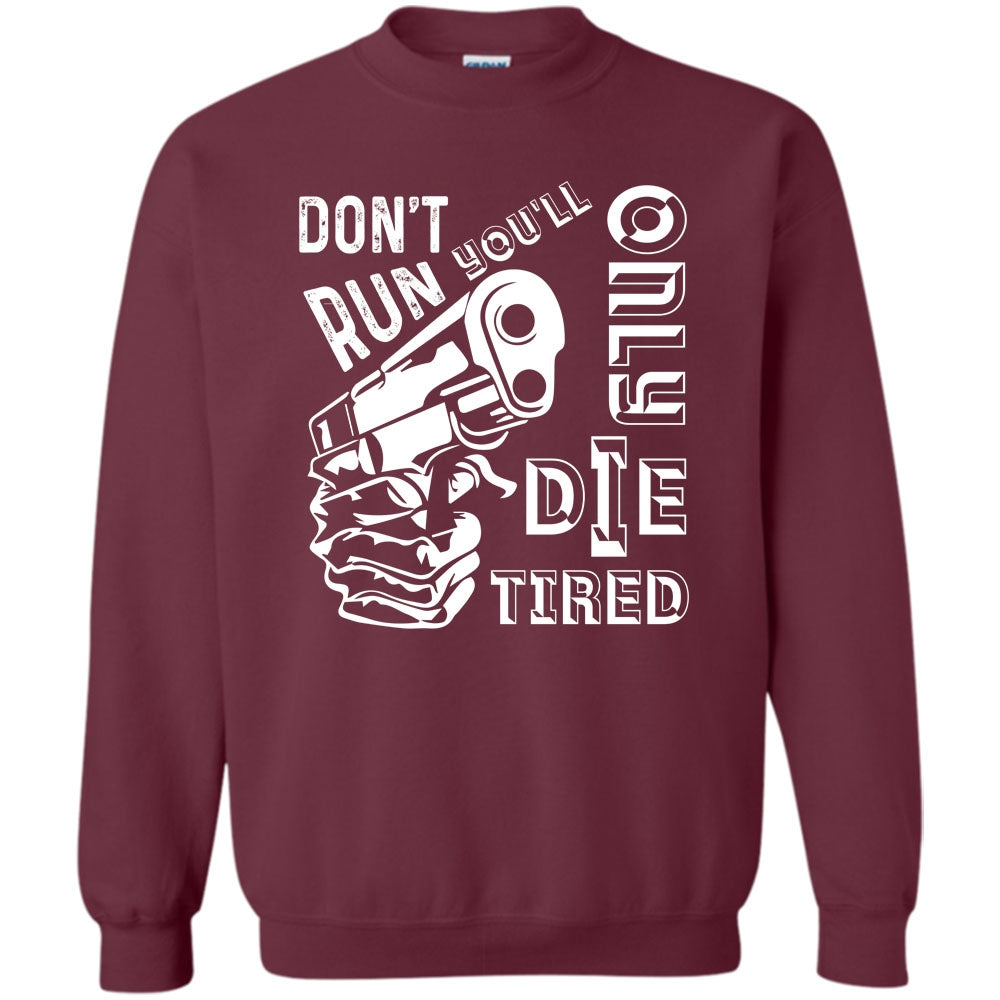 You'll Only Die Tired T Shirt, Coolest Shooter Sweatshirt