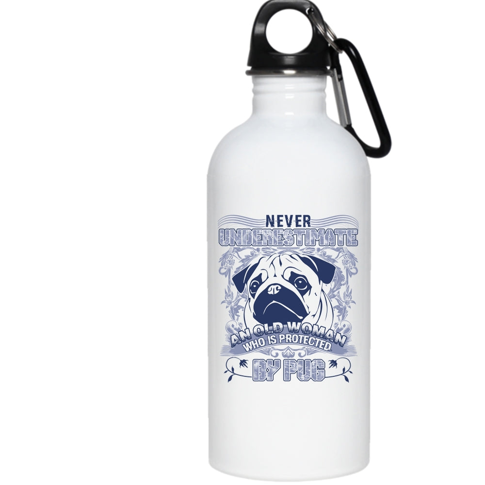 An Old Woman Is Protected By Pug 20 oz Stainless Steel Bottle,Cool Pug Owner Outdoor Sports Water Bottle