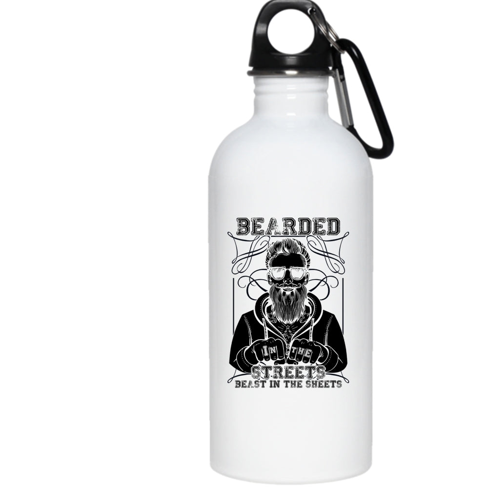 Bearded In The Streets 20 oz Stainless Steel Bottle,Cool Gift For Bearded Men Outdoor Sports Water Bottle