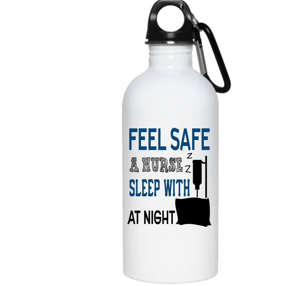 Feel Safe At Night Sleep With A Nurse 20 oz Stainless Steel Bottle,Funny Nusres Outdoor Sports Water Bottle