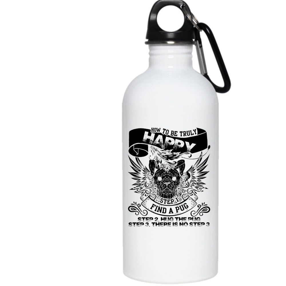 How To Be Truly Happy 20 oz Stainless Steel Bottle,Find A Pug Hug The Pug Outdoor Sports Water Bottle