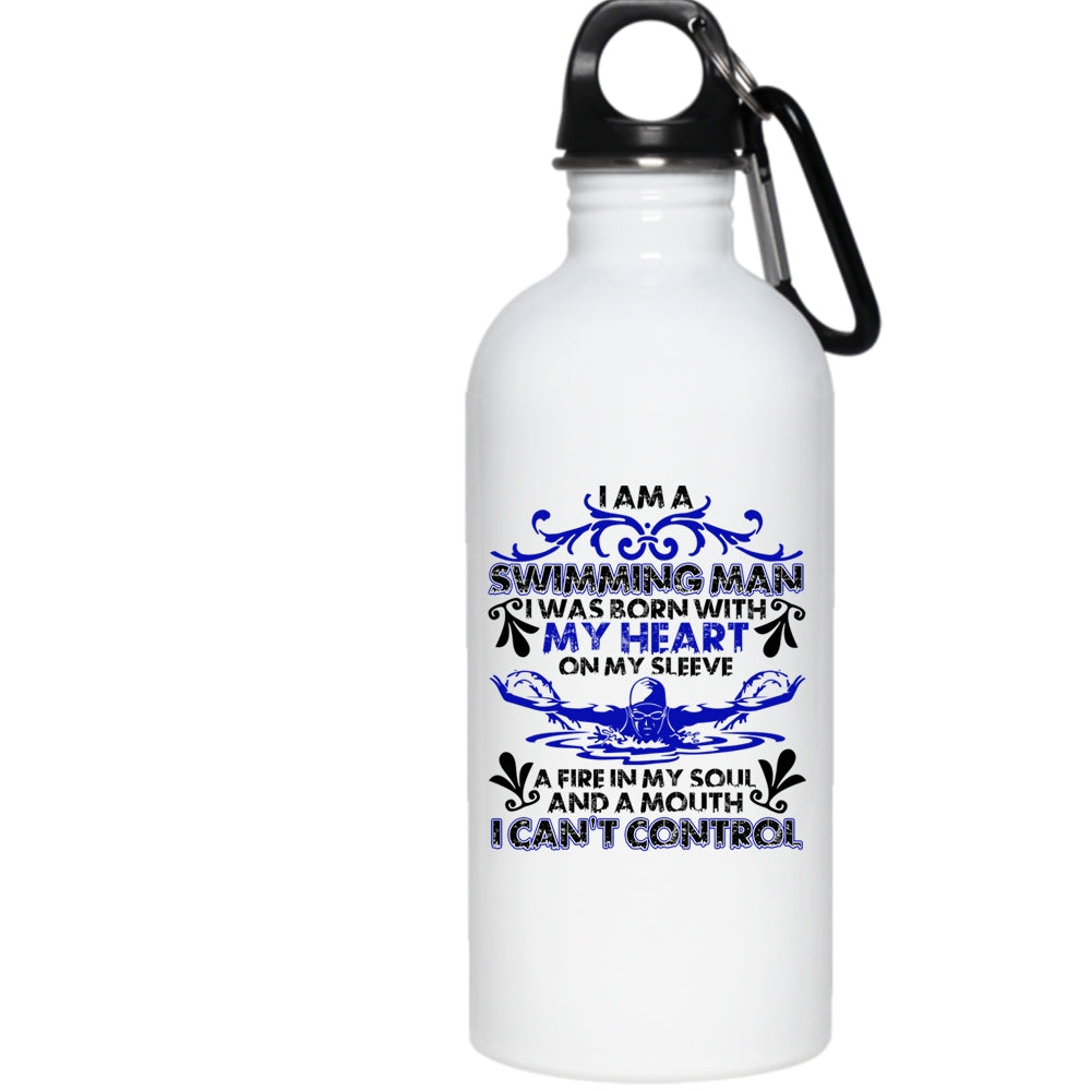 I Am A Swimming Man 20 oz Stainless Steel Bottle,I Was Born With My Heart Outdoor Sports Water Bottle