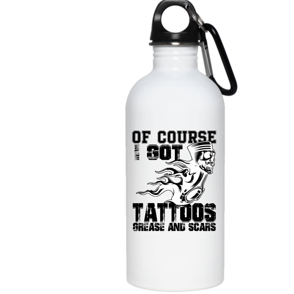 I Got Tattoos Grease And Scars 20 oz Stainless Steel Bottle,Funny Tattooed Mechanics Outdoor Sports Water Bottle