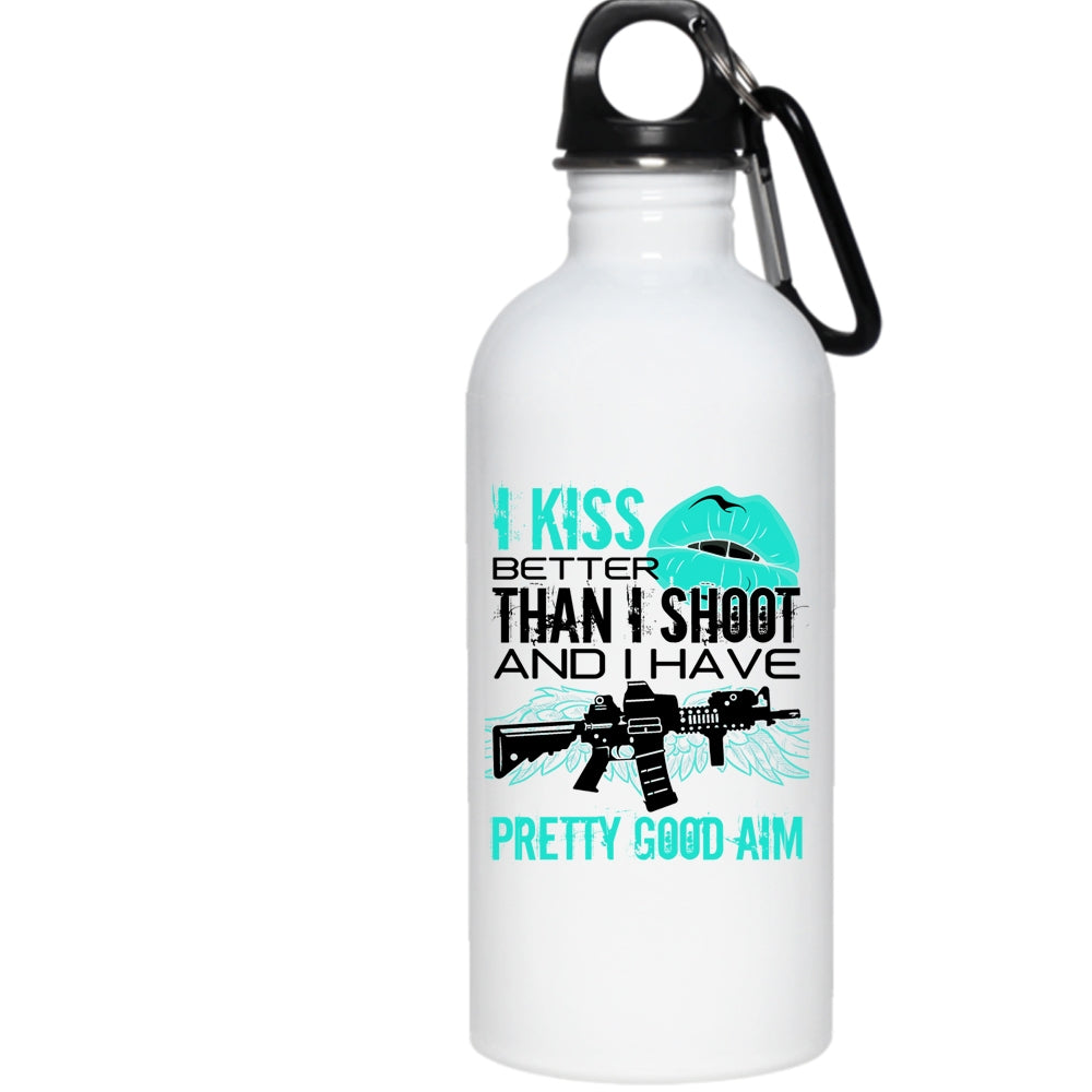 I Kiss Better Than I Shoot 20 oz Stainless Steel Bottle,Funny Gift For Gunner Outdoor Sports Water Bottle