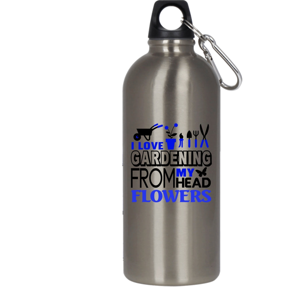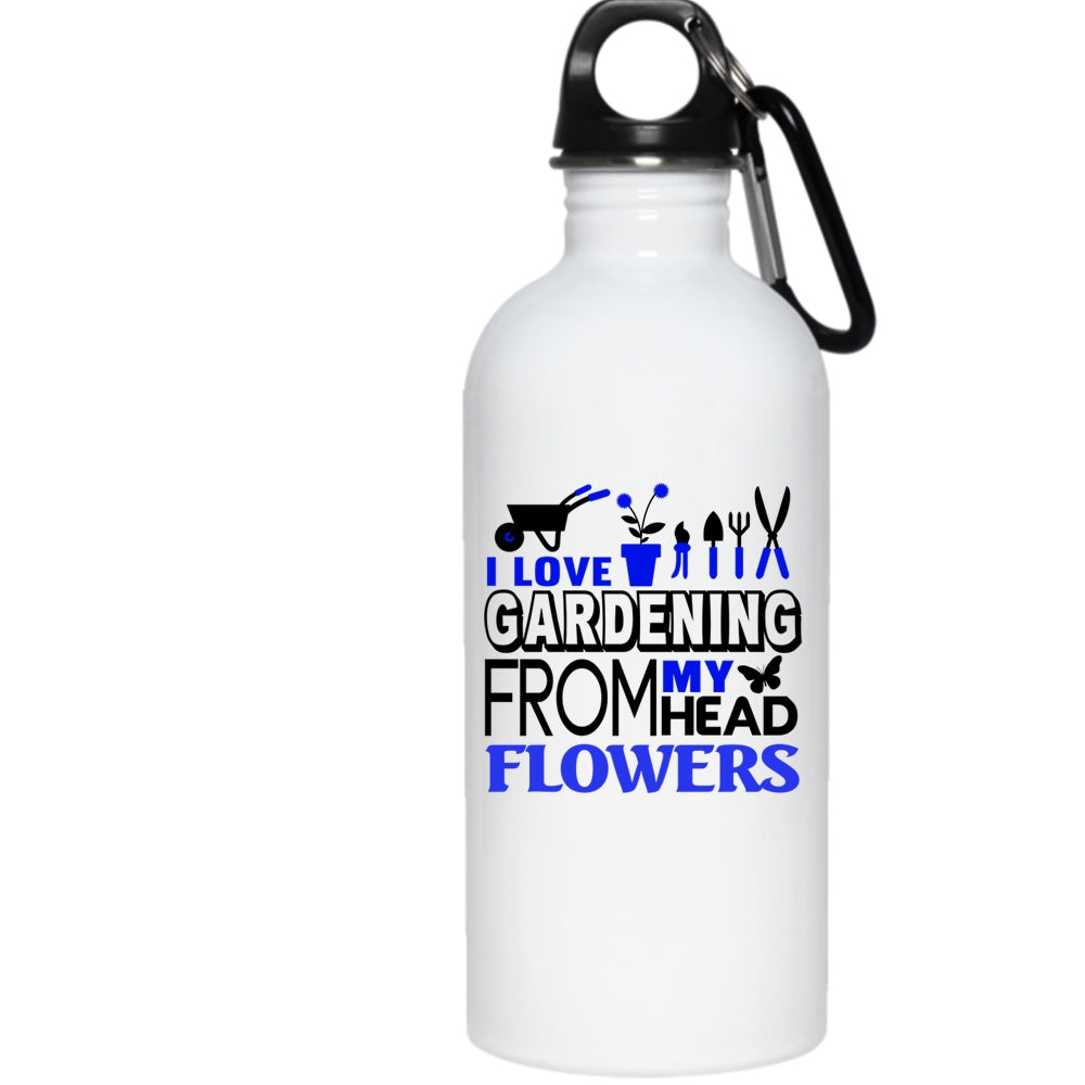 I Love Gardening From My Head Flowers 20 oz Stainless Steel Bottle,Gardener Outdoor Sports Water Bottle