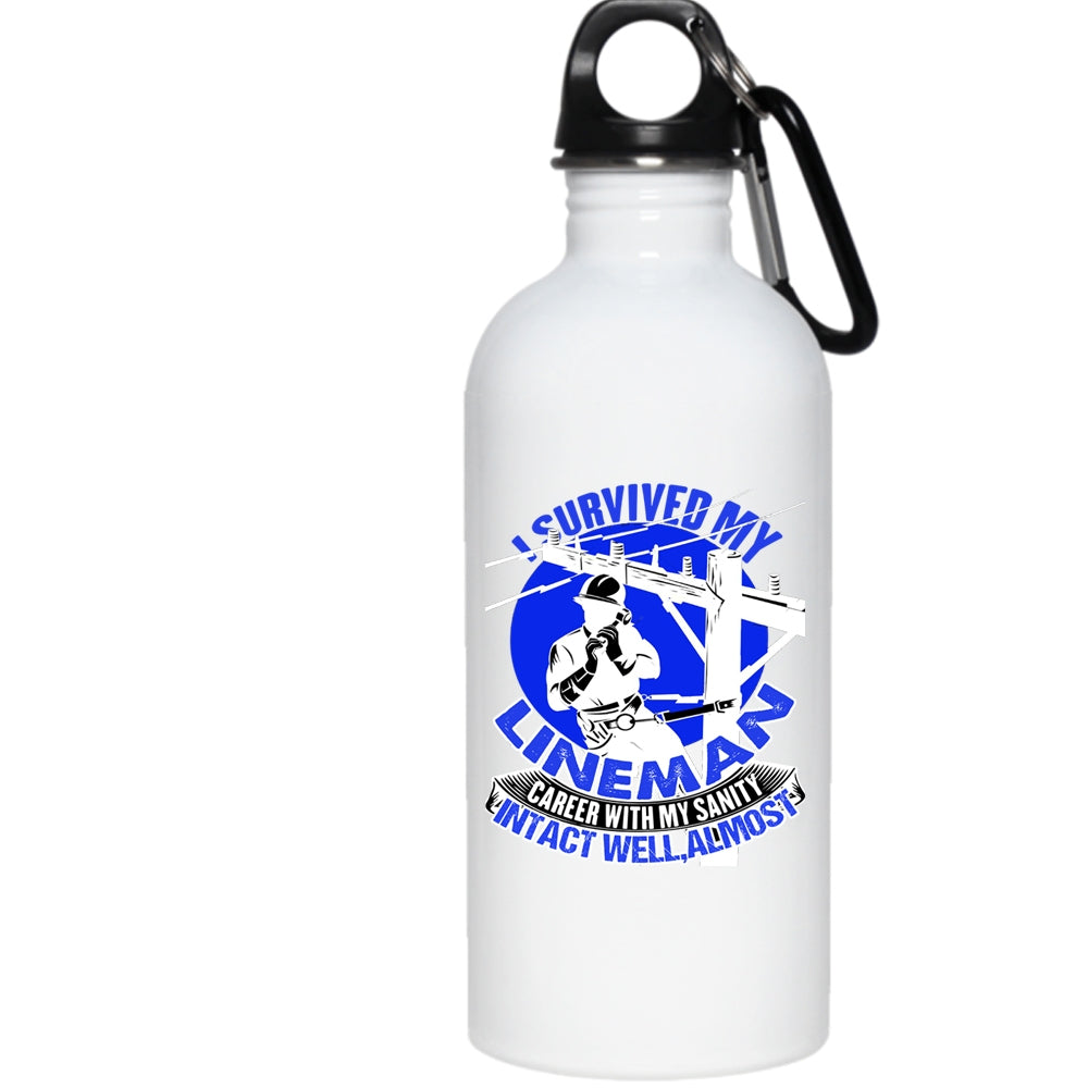 I Survived My Lineman Career With My Sanity 20 oz Stainless Steel Bottle,Cute Lineman Outdoor Sports Water Bottle