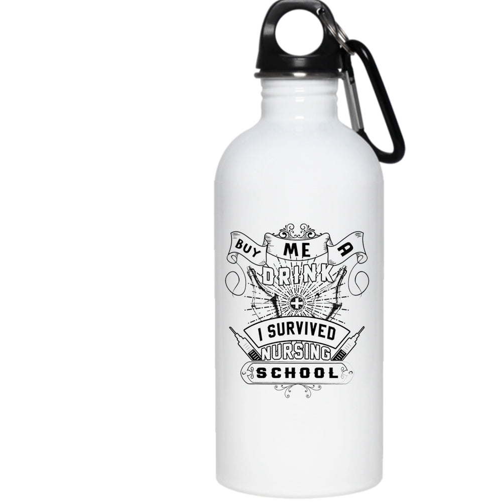 I Survived Nursing School 20 oz Stainless Steel Bottle,Funny Drinking Outdoor Sports Water Bottle