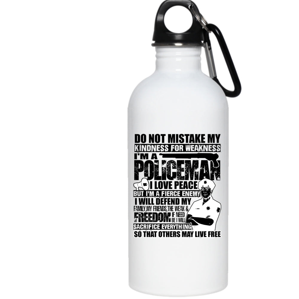 I'm A Policeman 20 oz Stainless Steel Bottle,I Will Defend My Family My Friends Outdoor Sports Water Bottle