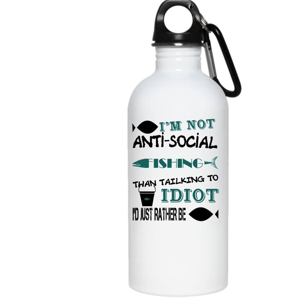 I'm Not Anti-Social 20 oz Stainless Steel Bottle,I'd Just Rather Be Fishing Outdoor Sports Water Bottle