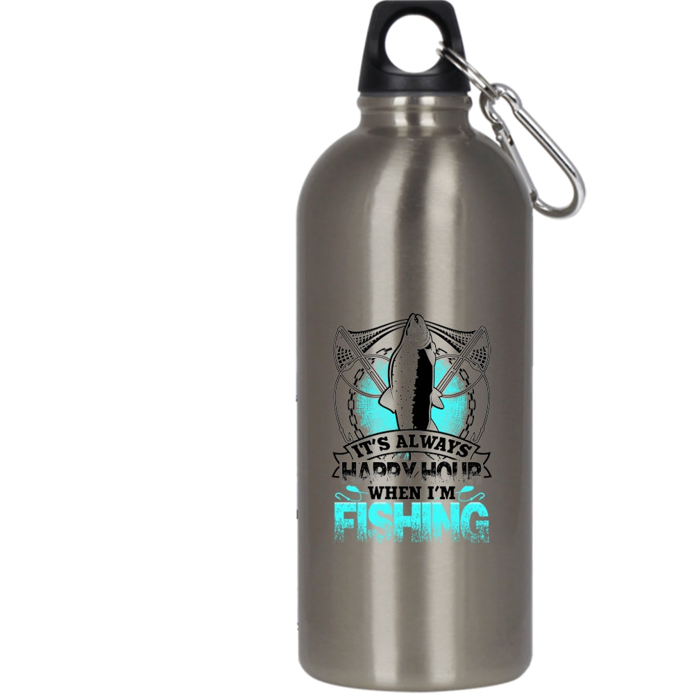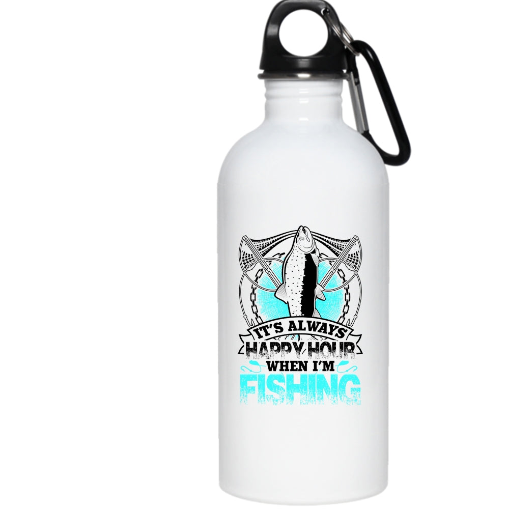 It's Always Happy Hour When I'm Fishing 20 oz Stainless Steel Bottle,Funny Fisher Outdoor Sports Water Bottle
