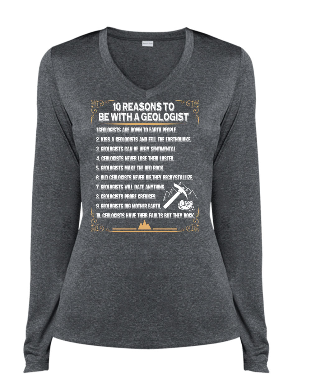 10 Reason's Be With A Geologist T Shirt, I Love Geologist T Shirt, Cool Shirt (Ladies LS Heather V-Neck)