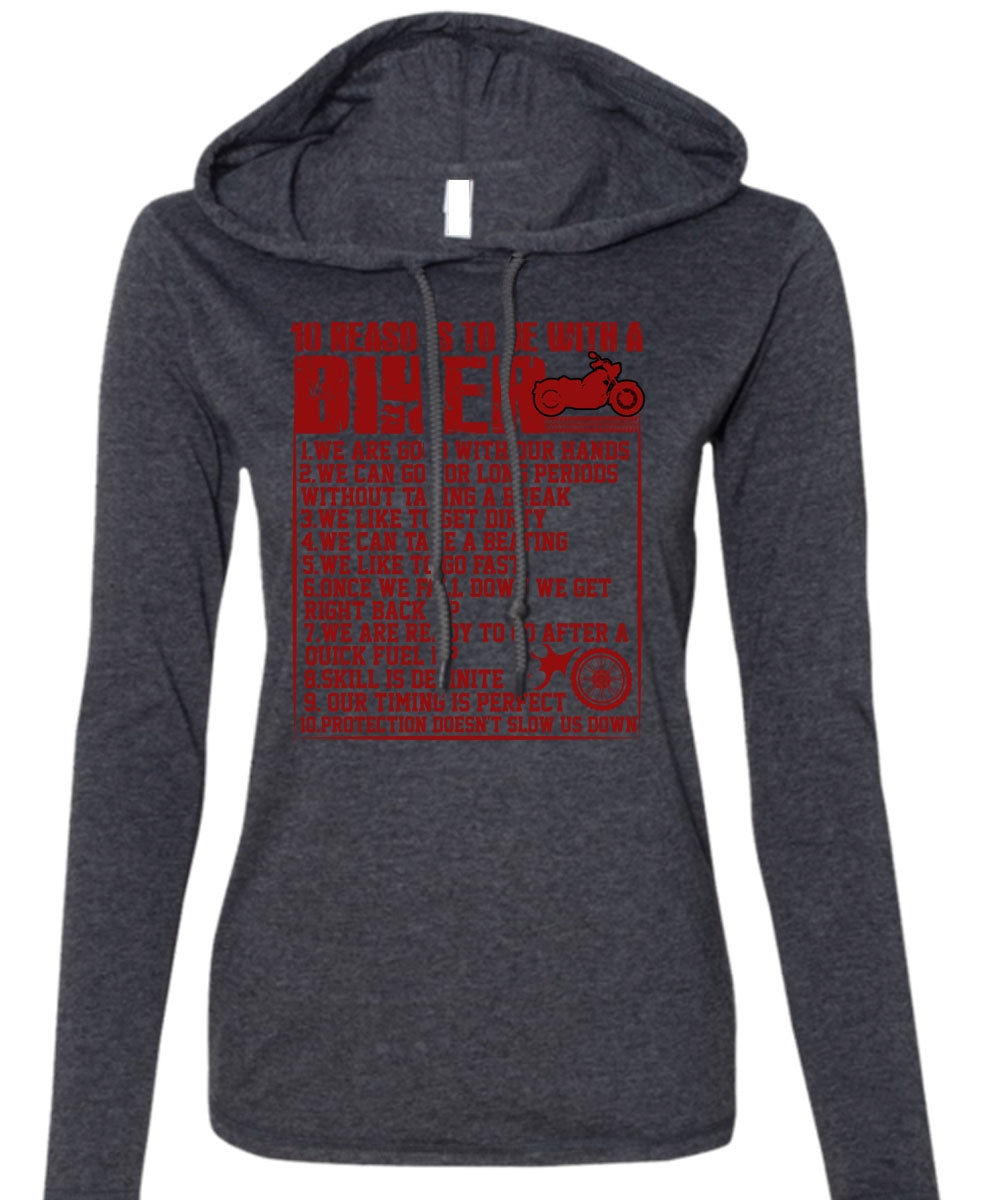 10 Reasons To Be With A Biker T Shirt, Being A Biker T Shirt (Anvil Ladies Ringspun Hooded)