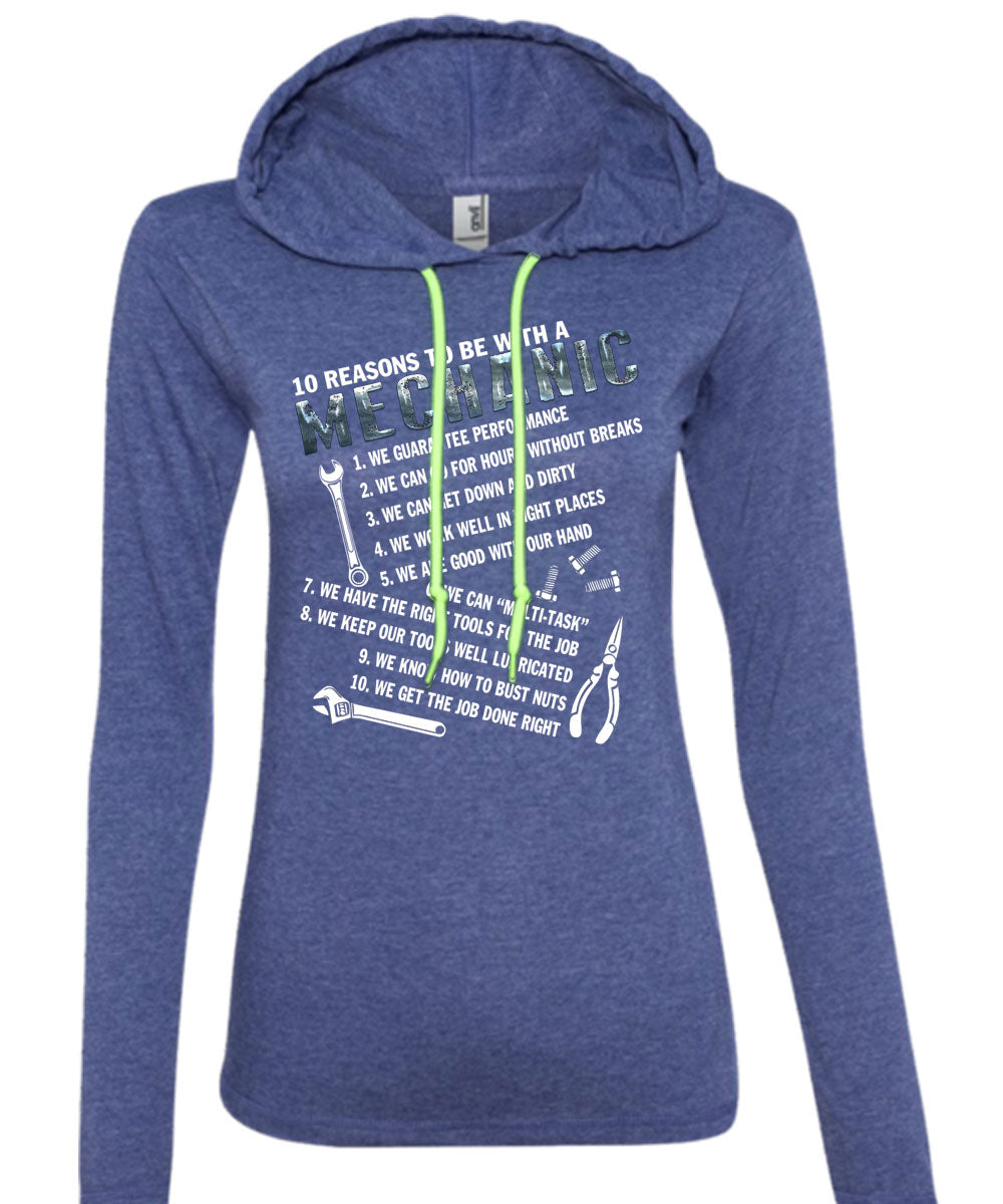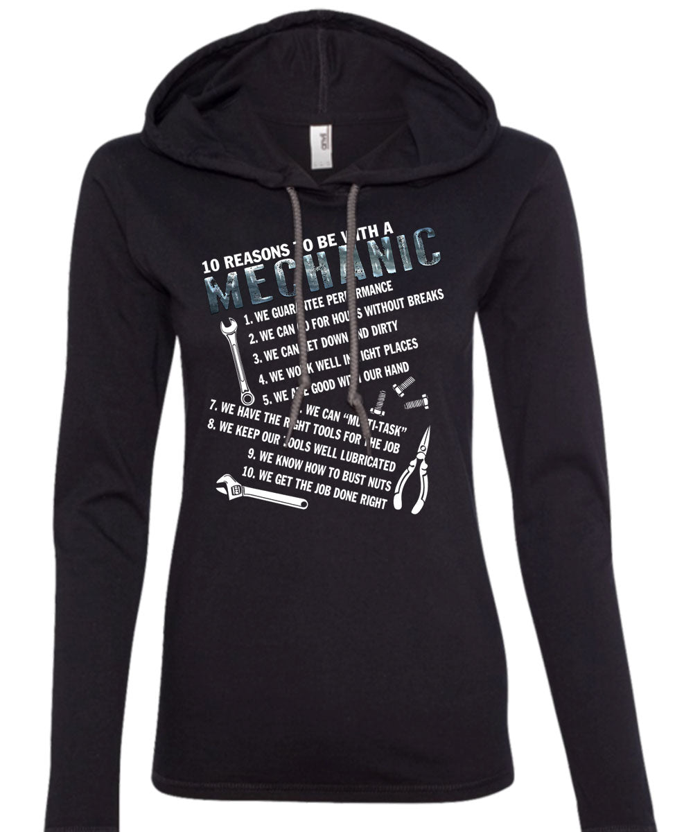 10 Reasons To Be With A Mechanic T Shirt, I Love Mechanic T Shirt (Anvil Ladies Ringspun Hooded)