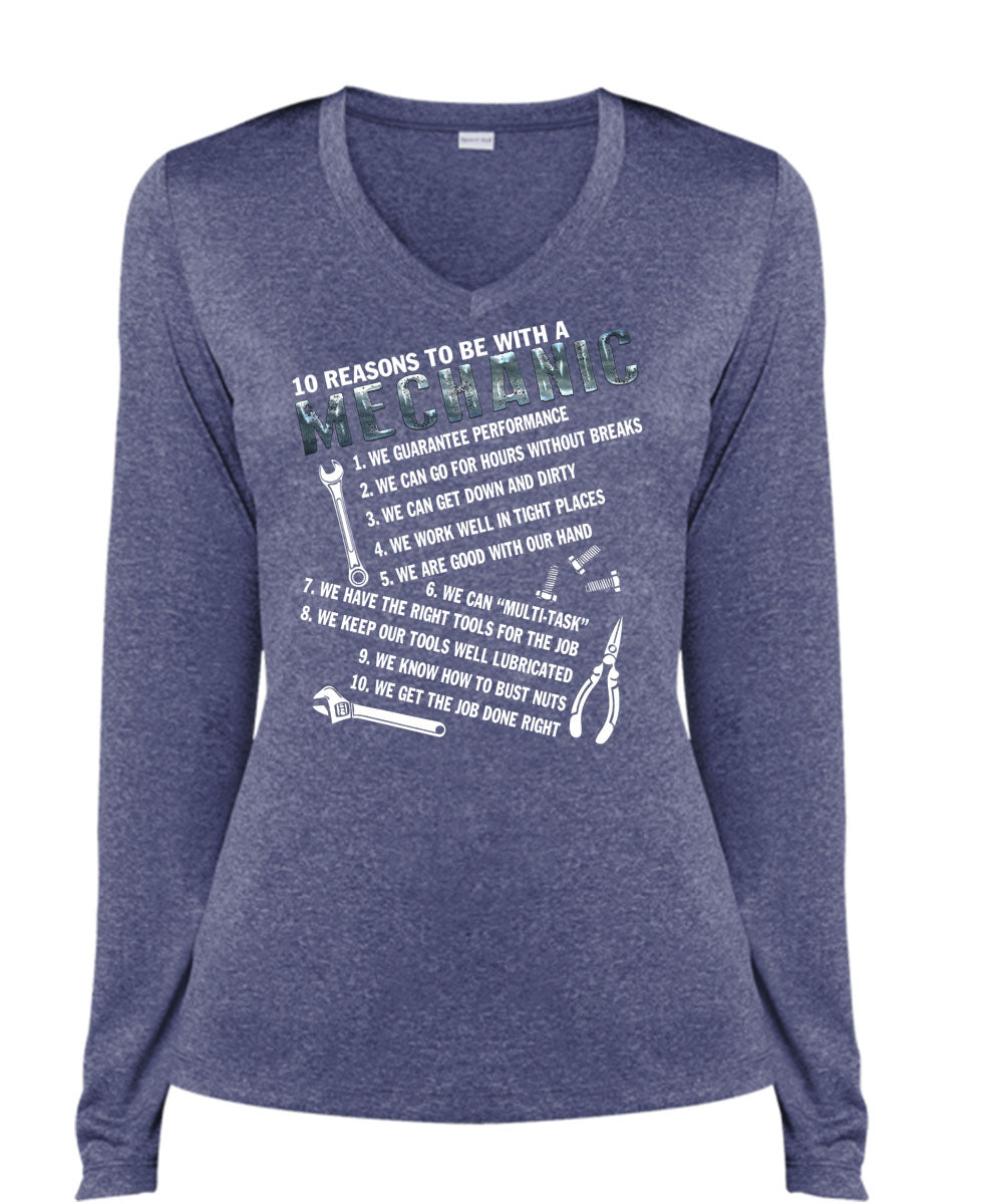 10 Reasons To Be With A Mechanic T Shirt, I Love Mechanic T Shirt, Cool Shirt (Ladies LS Heather V-Neck)