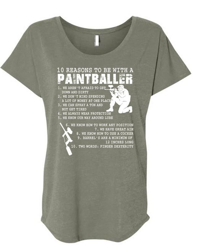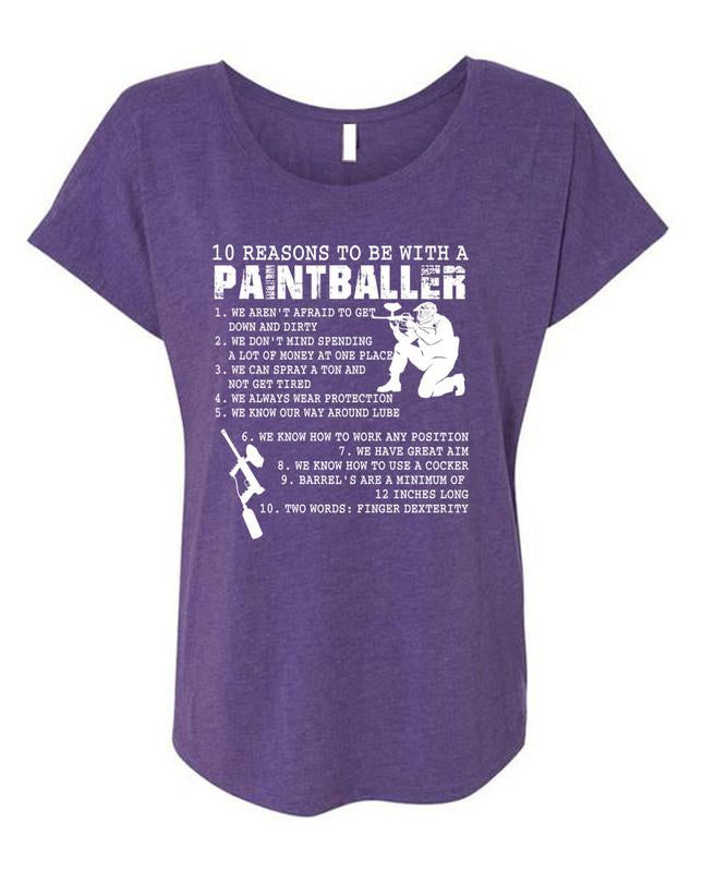10 Reasons To Be With A Paintballer T Shirt, I Love Gunner T Shirt, Cool Shirt (Ladies' Triblend Dolman Sleeve)