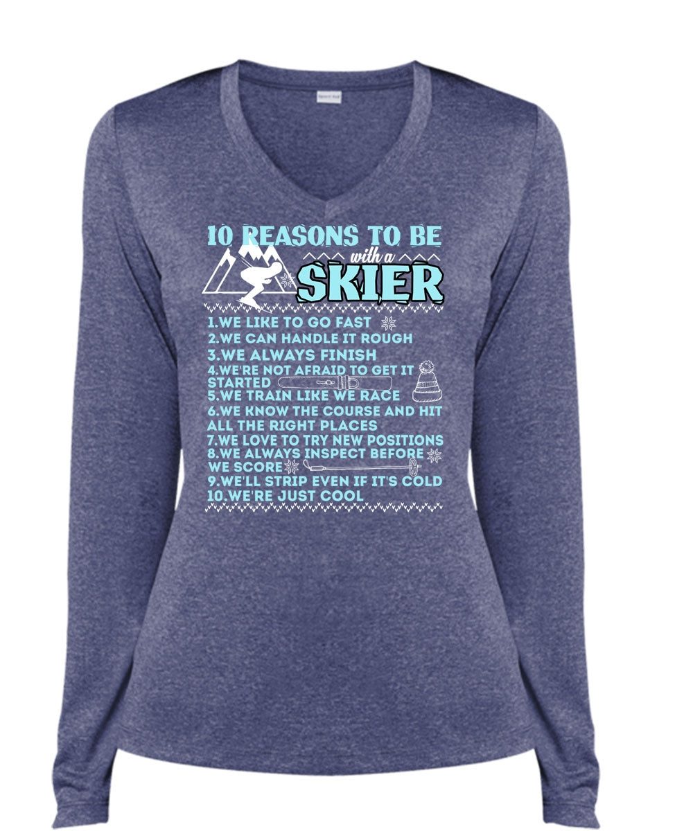 10 Reasons To Be With A Skier T Shirt, Being A Skier T Shirt, Cool Shirt (Ladies LS Heather V-Neck)