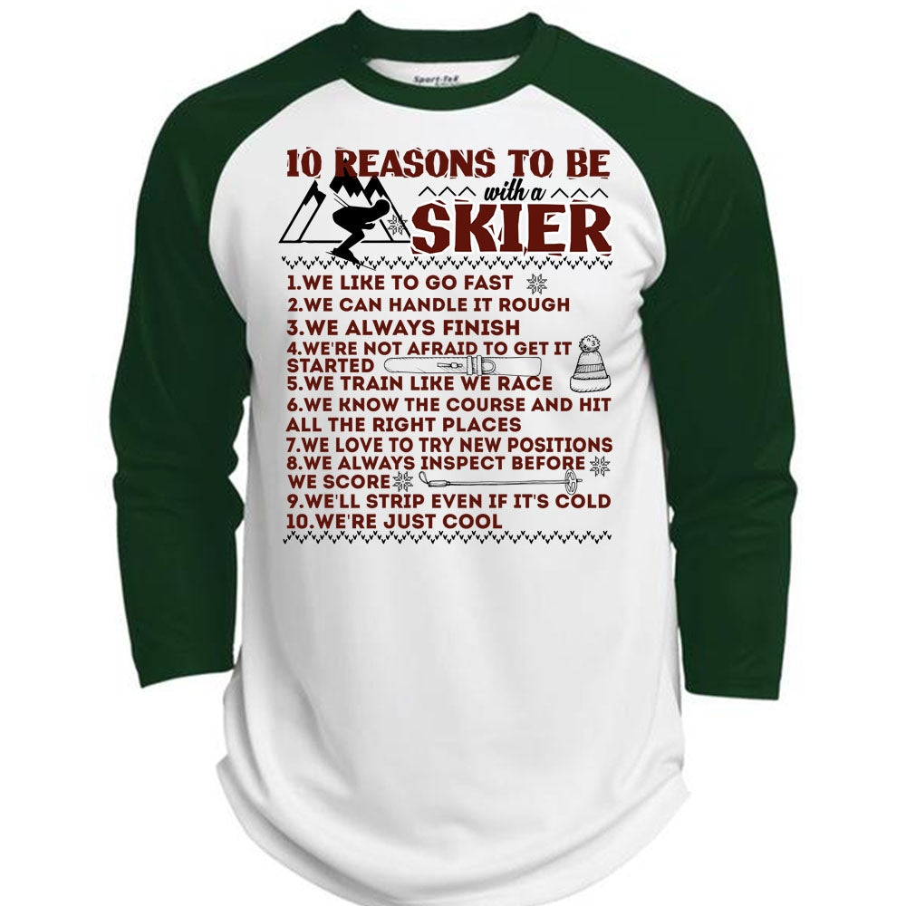 10 Reasons To Be With A Skier T Shirt, I Love Skiing T Shirt, Awesome T-Shirts (Polyester Game Baseball Jersey)