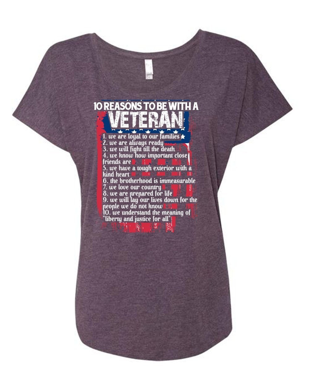 10 Reasons To Be With A Veteran T Shirt, Life T Shirt, Brotherhood T Shirt (Ladies' Triblend Dolman Sleeve)