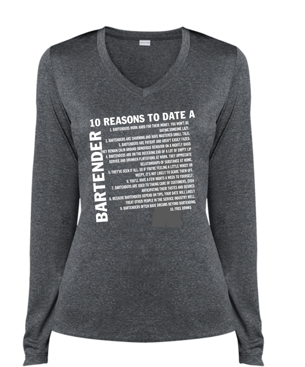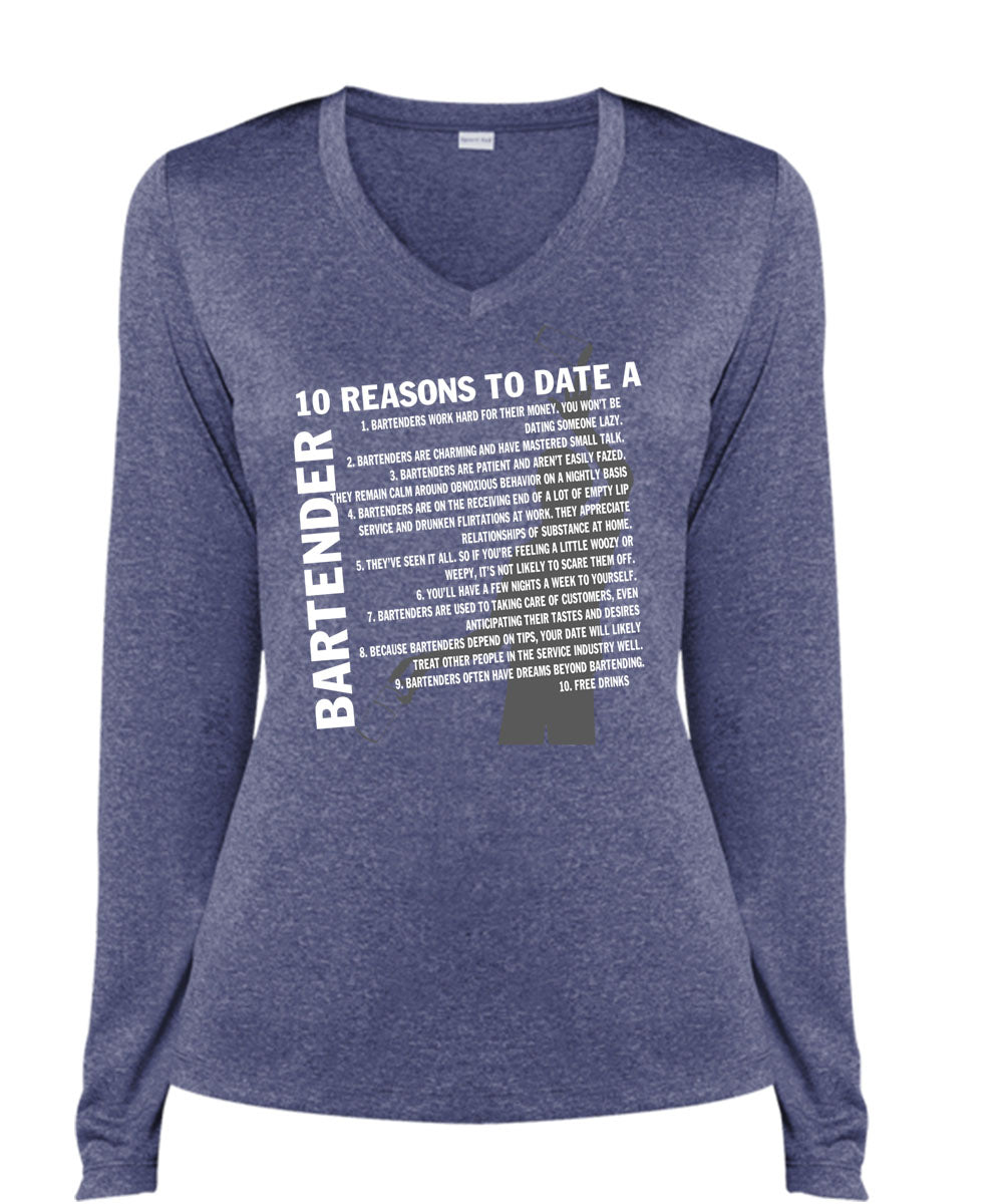 10 Reasons To Date A Bartender T Shirt, Being A Bartender T Shirt, Cool Shirt (Ladies LS Heather V-Neck)