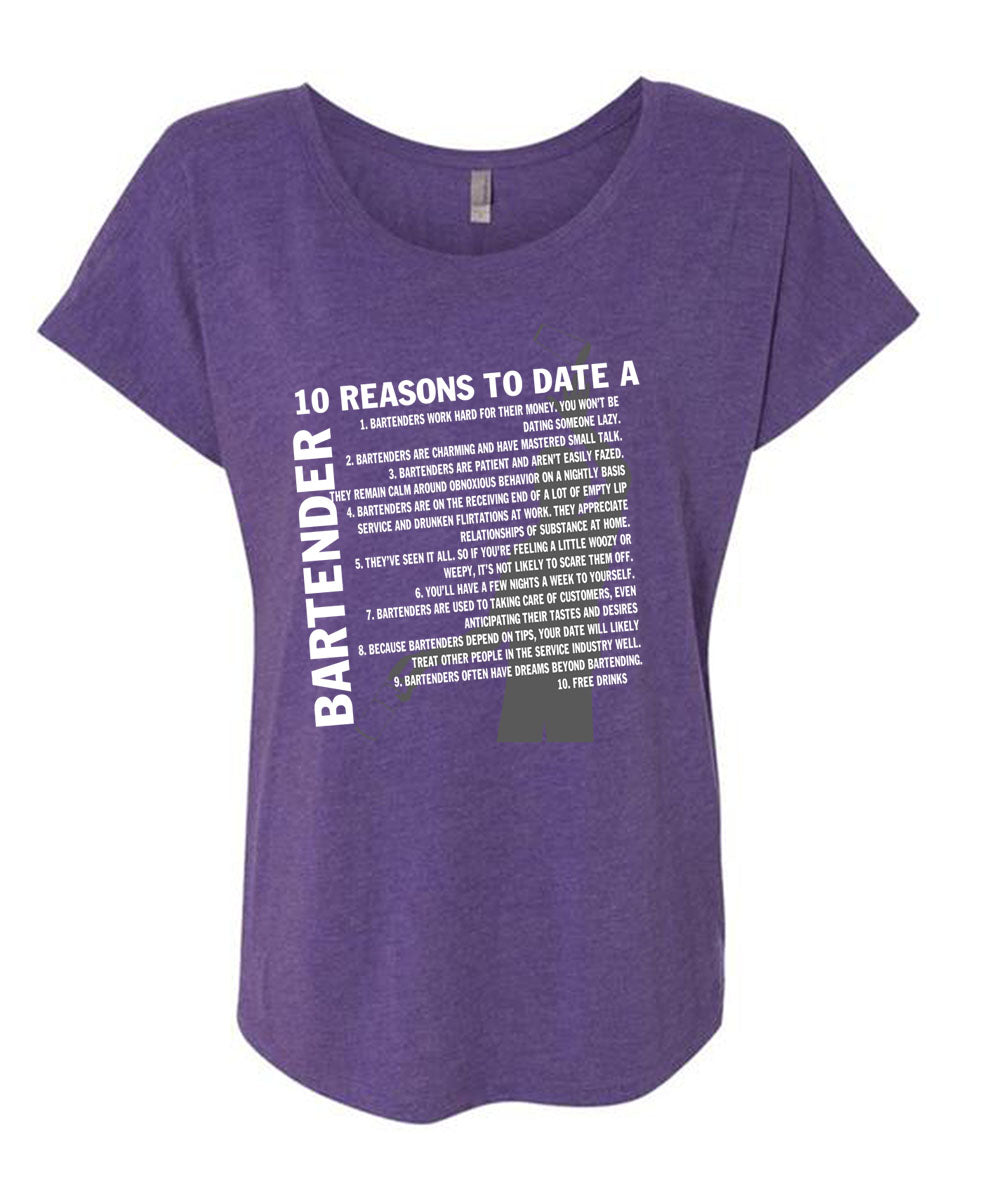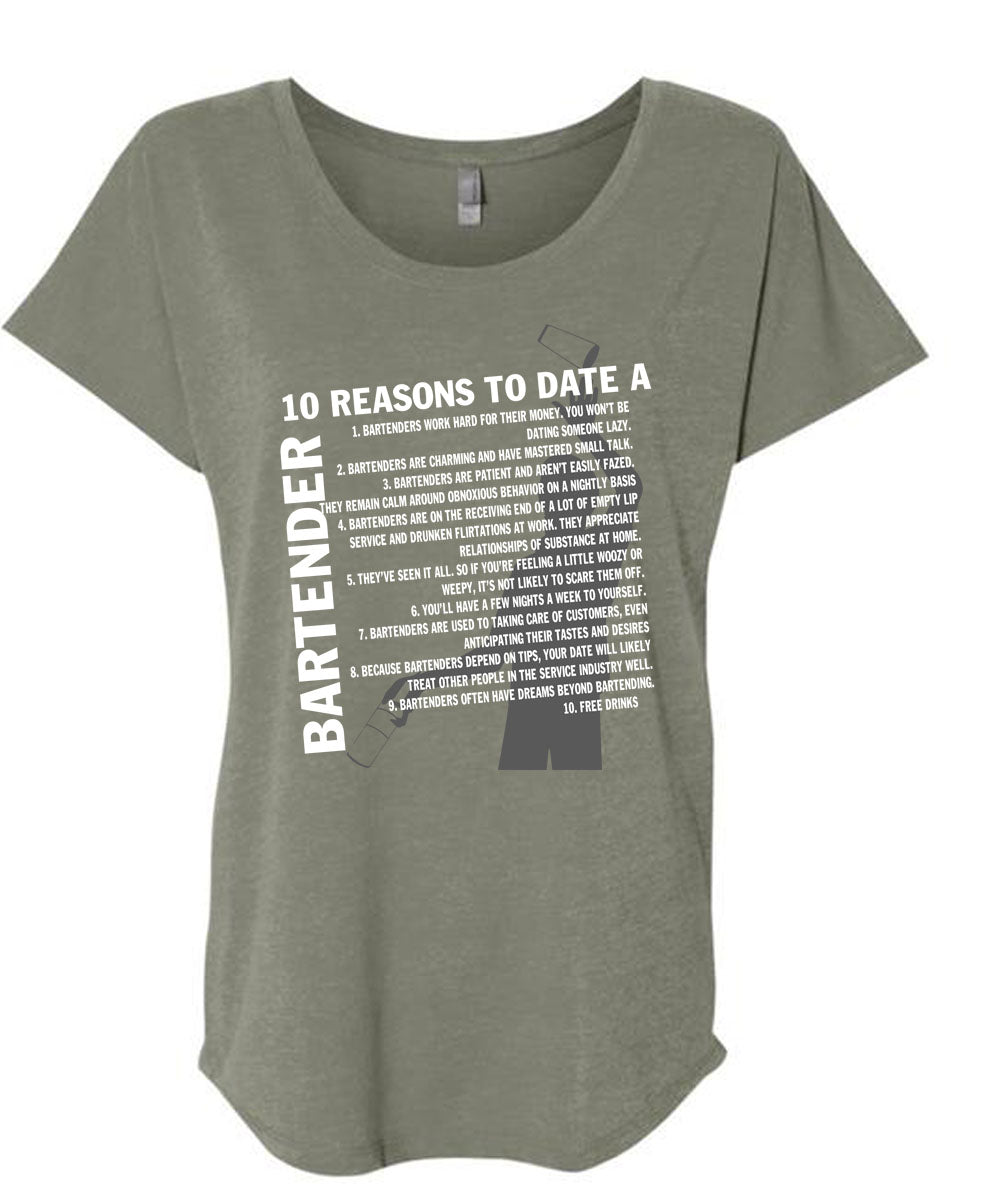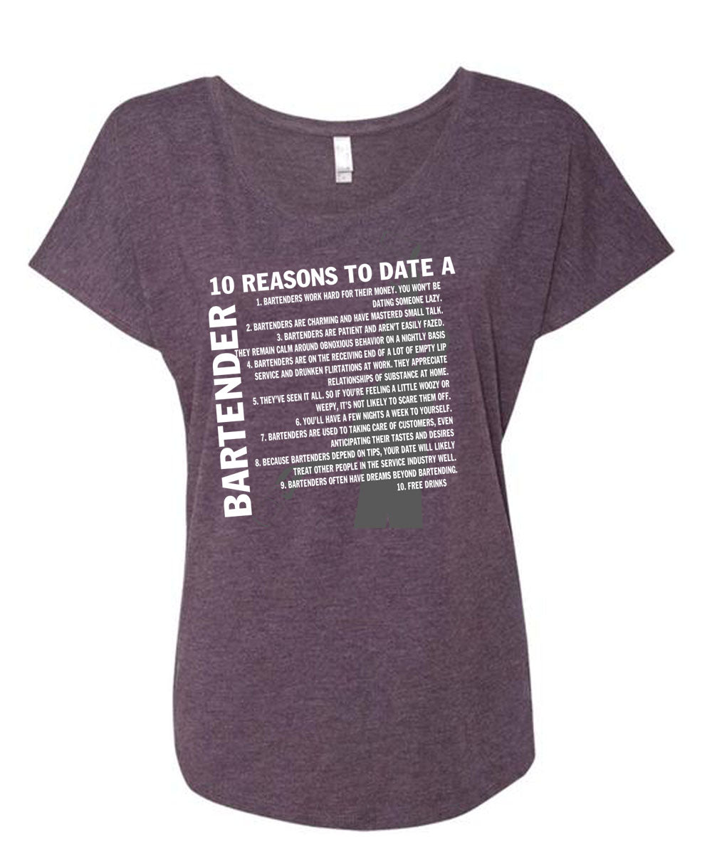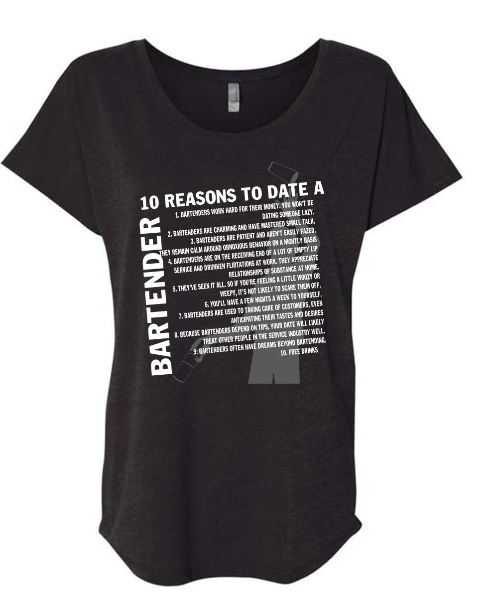 10 Reasons To Date A Bartender T Shirt, Being A Bartender T Shirt, Cool Shirt (Ladies' Triblend Dolman Sleeve)