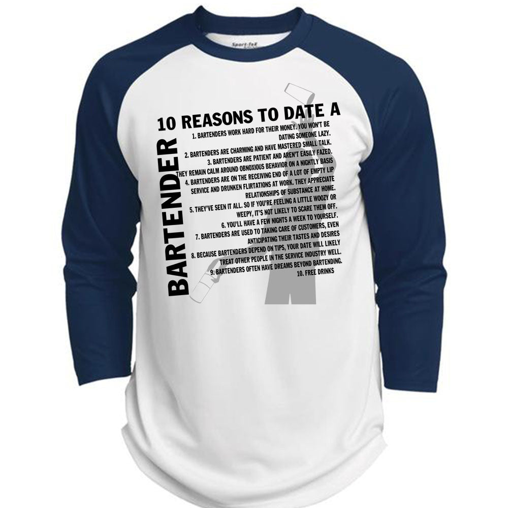 10 Reasons To Date A Bartender T Shirt, I Love Bartender T Shirt, Awesome T-Shirts (Polyester Game Baseball Jersey)