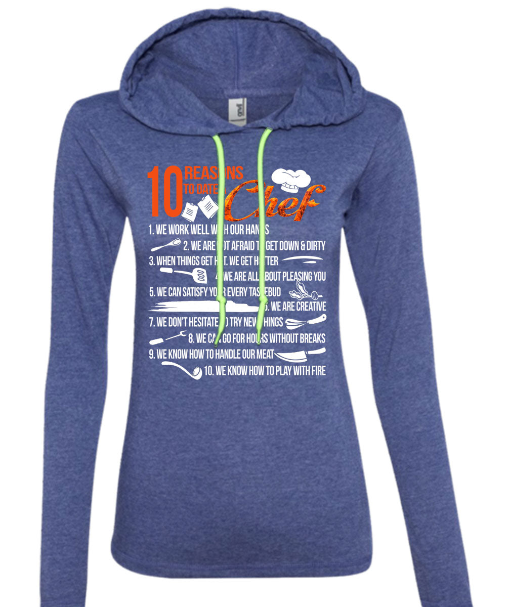 10 Reasons To Date A Chef T Shirt, I Love Cooking T Shirt (Anvil Ladies Ringspun Hooded)