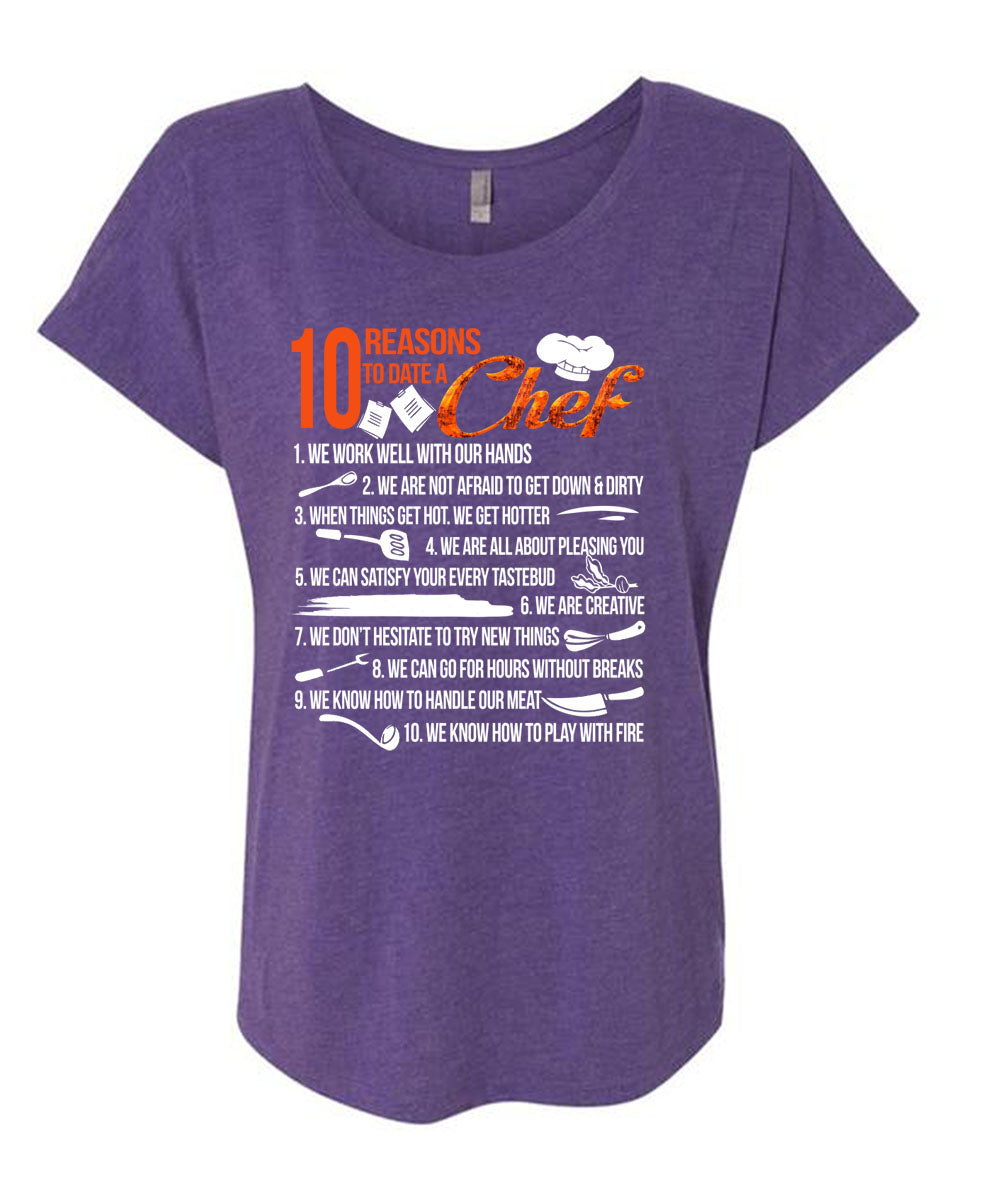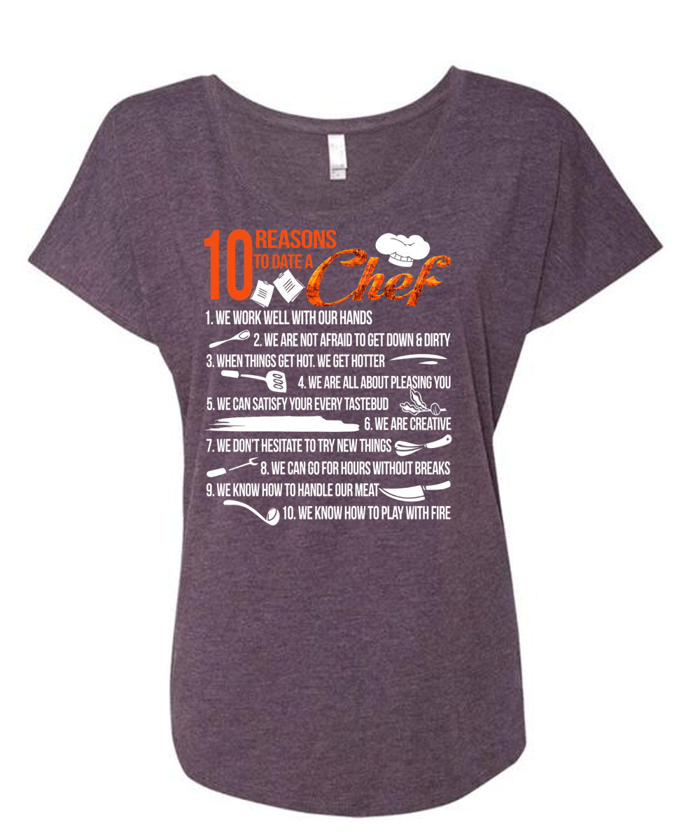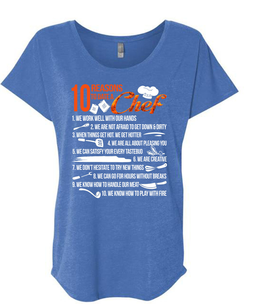 10 Reasons To Date A Chef T Shirt, I Love Cooking T Shirt, Cool Shirt (Ladies' Triblend Dolman Sleeve)