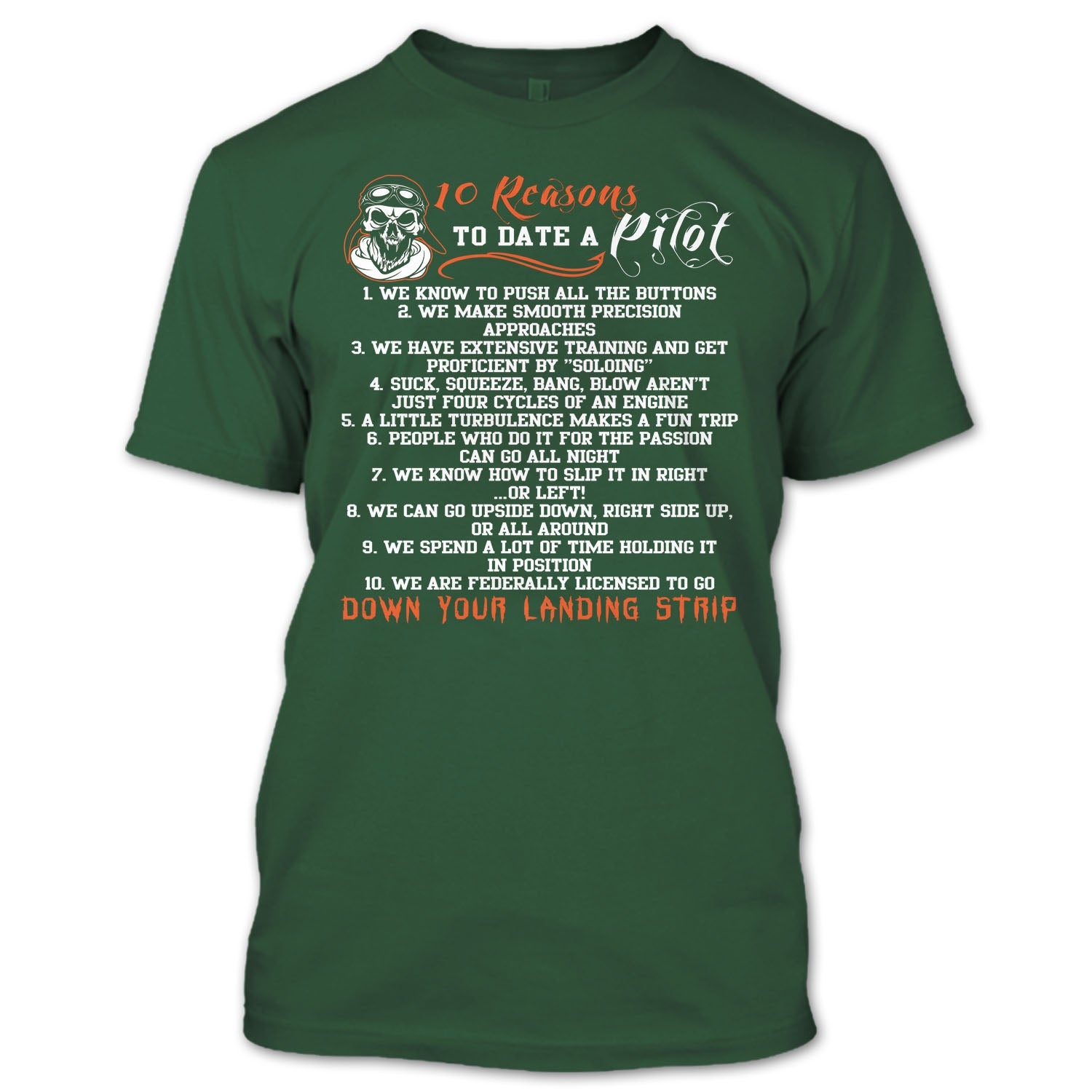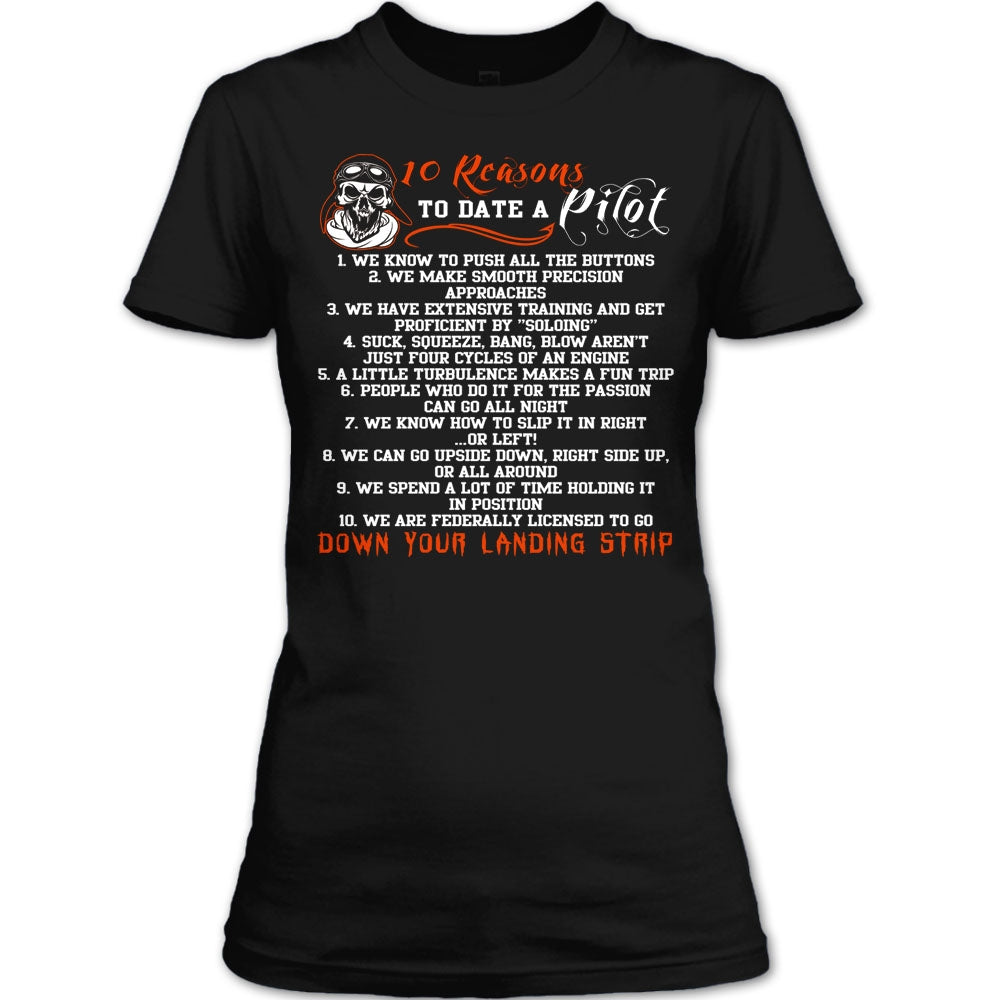 10 Reasons To Date A Pilot T Shirt, Down Your Landing Strip T Shirt