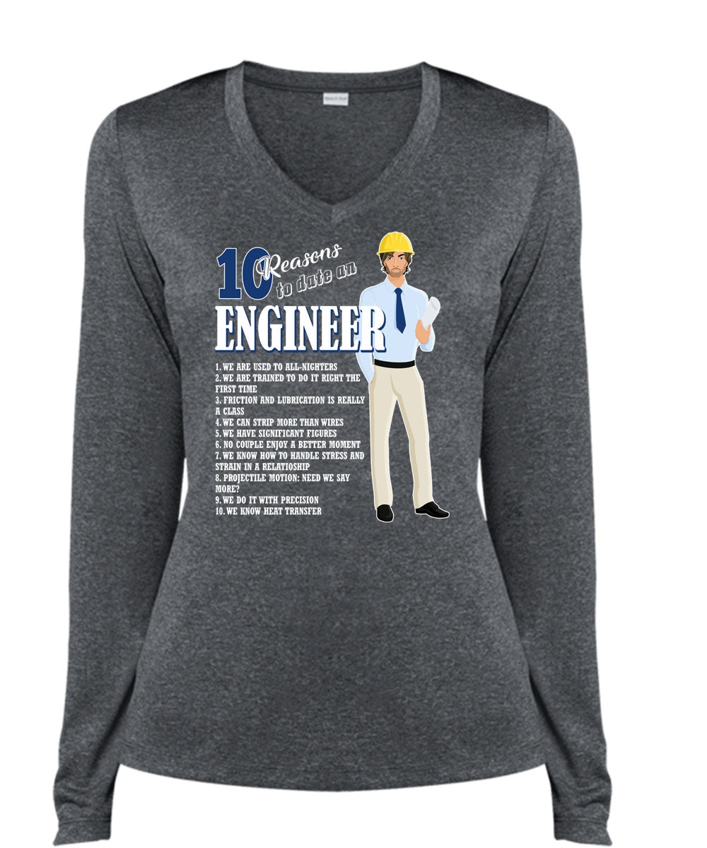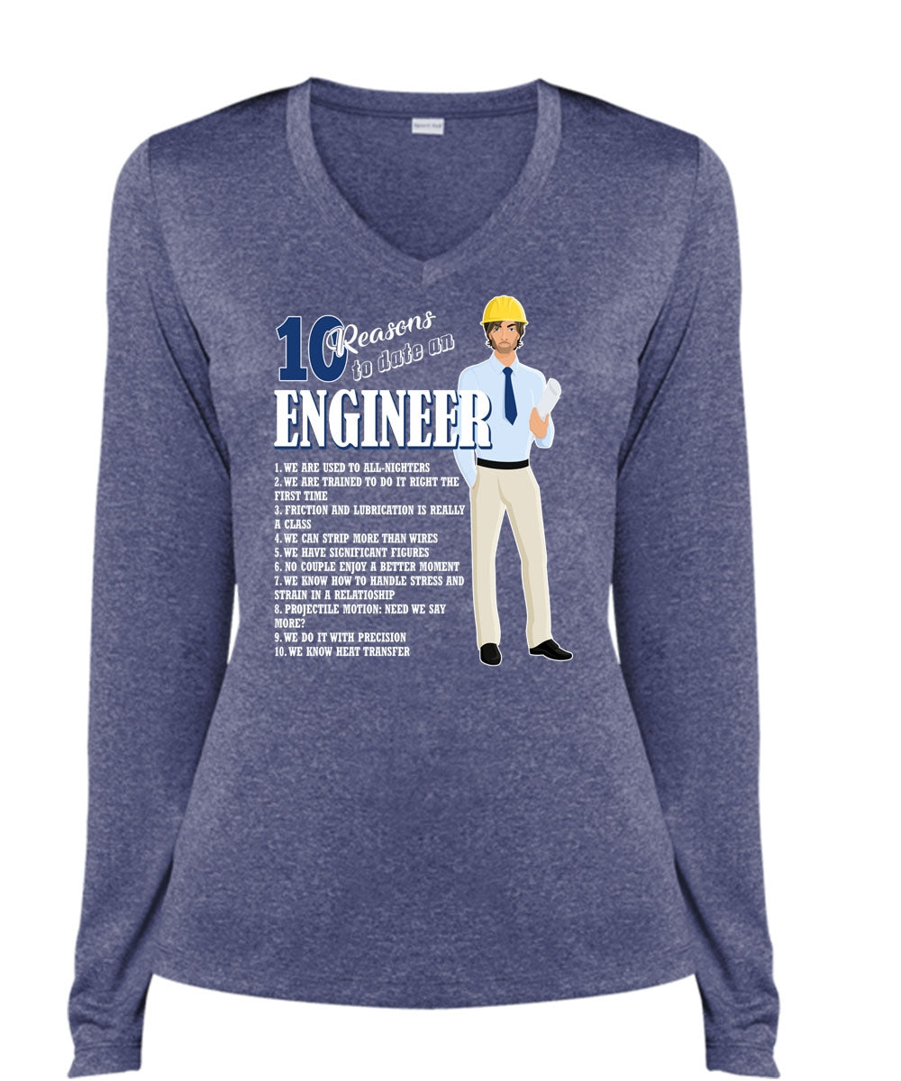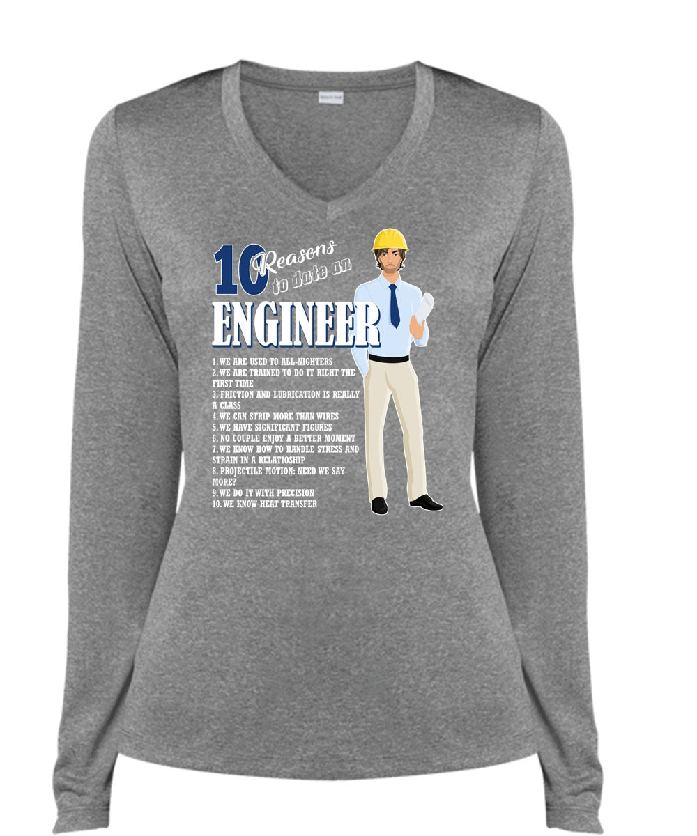 10 Reasons To Date An Engineer T Shirt, Being An Engineer T Shirt, Cool Shirt (Ladies LS Heather V-Neck)