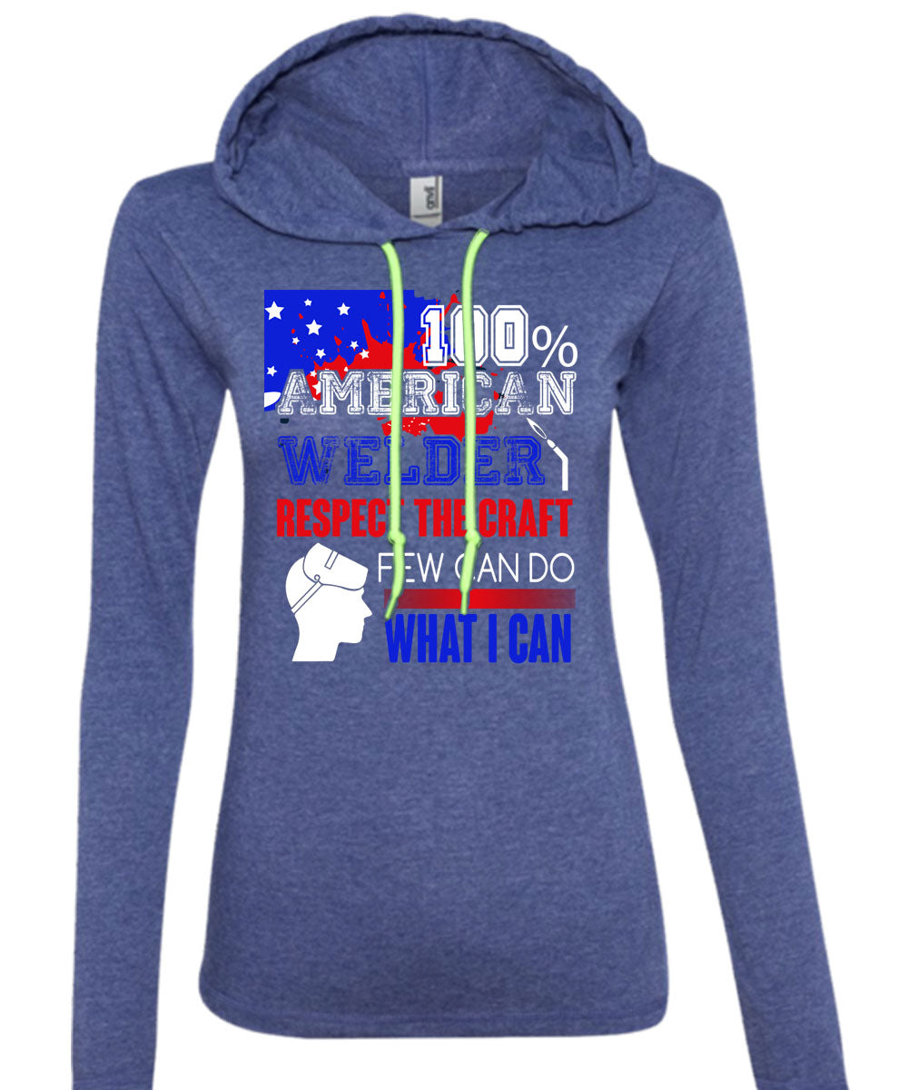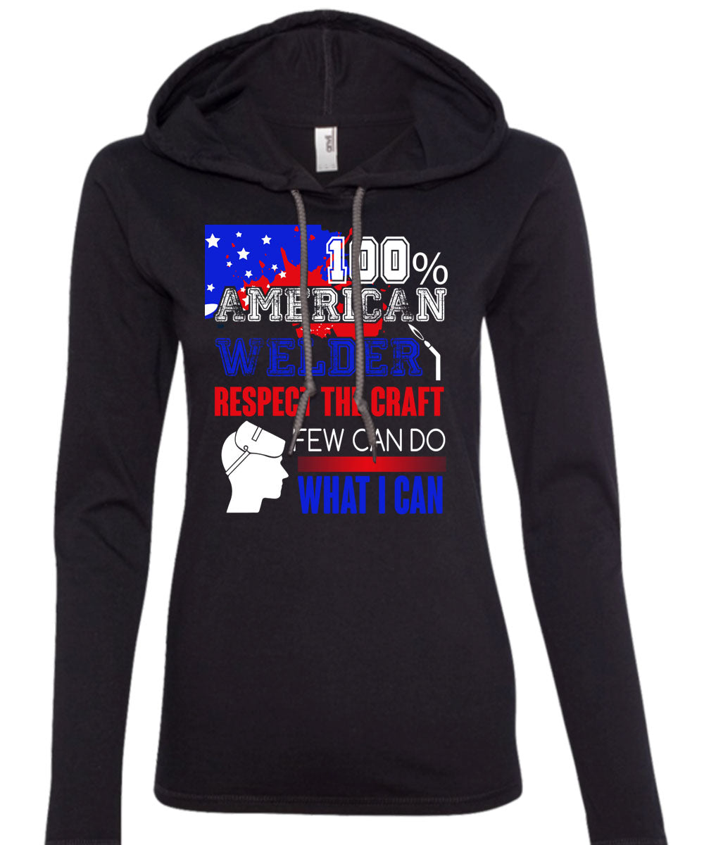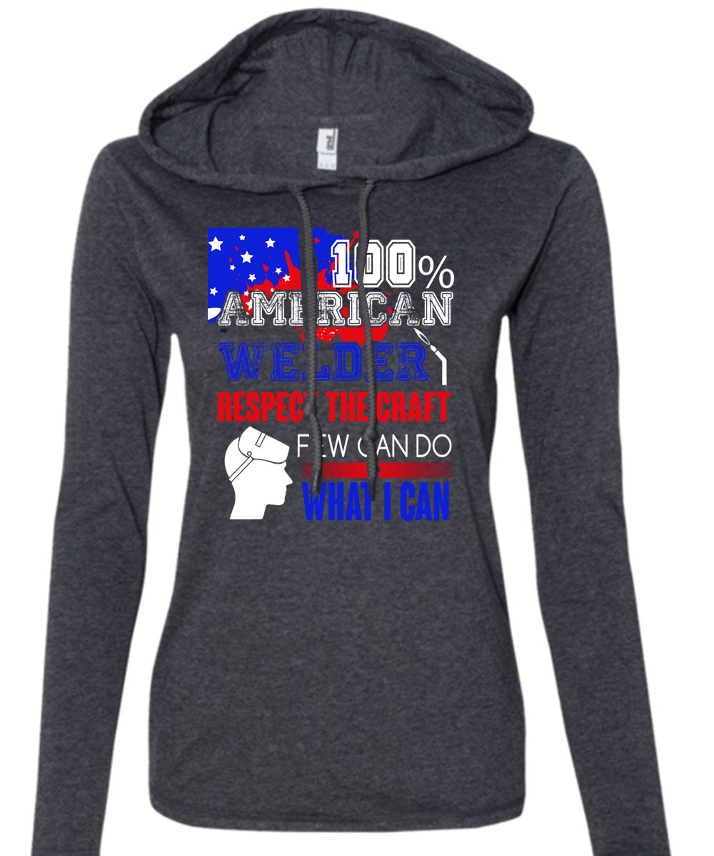 100% American Welder Respect The Craft T Shirt, Being A Welder T Shirt (Anvil Ladies Ringspun Hooded)