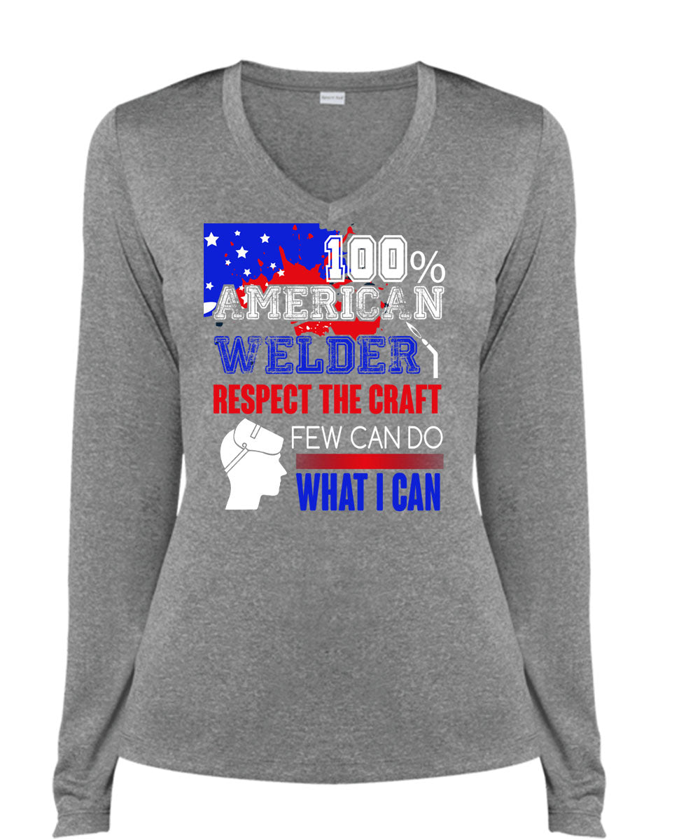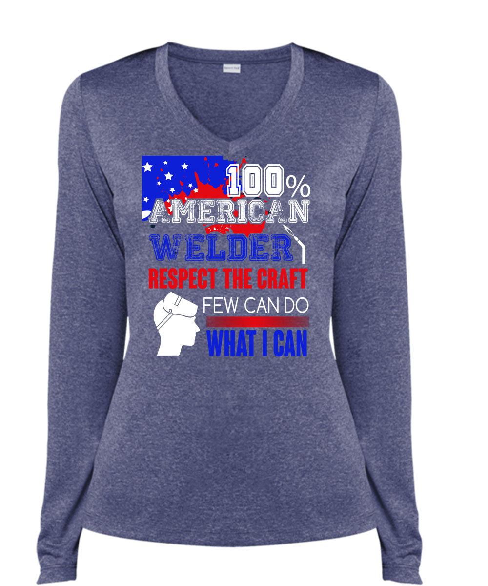 100% American Welder Respect The Craft T Shirt, Being A Welder T Shirt, Cool Shirt (Ladies LS Heather V-Neck)