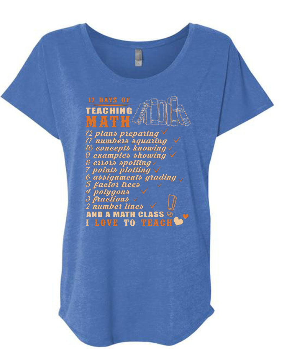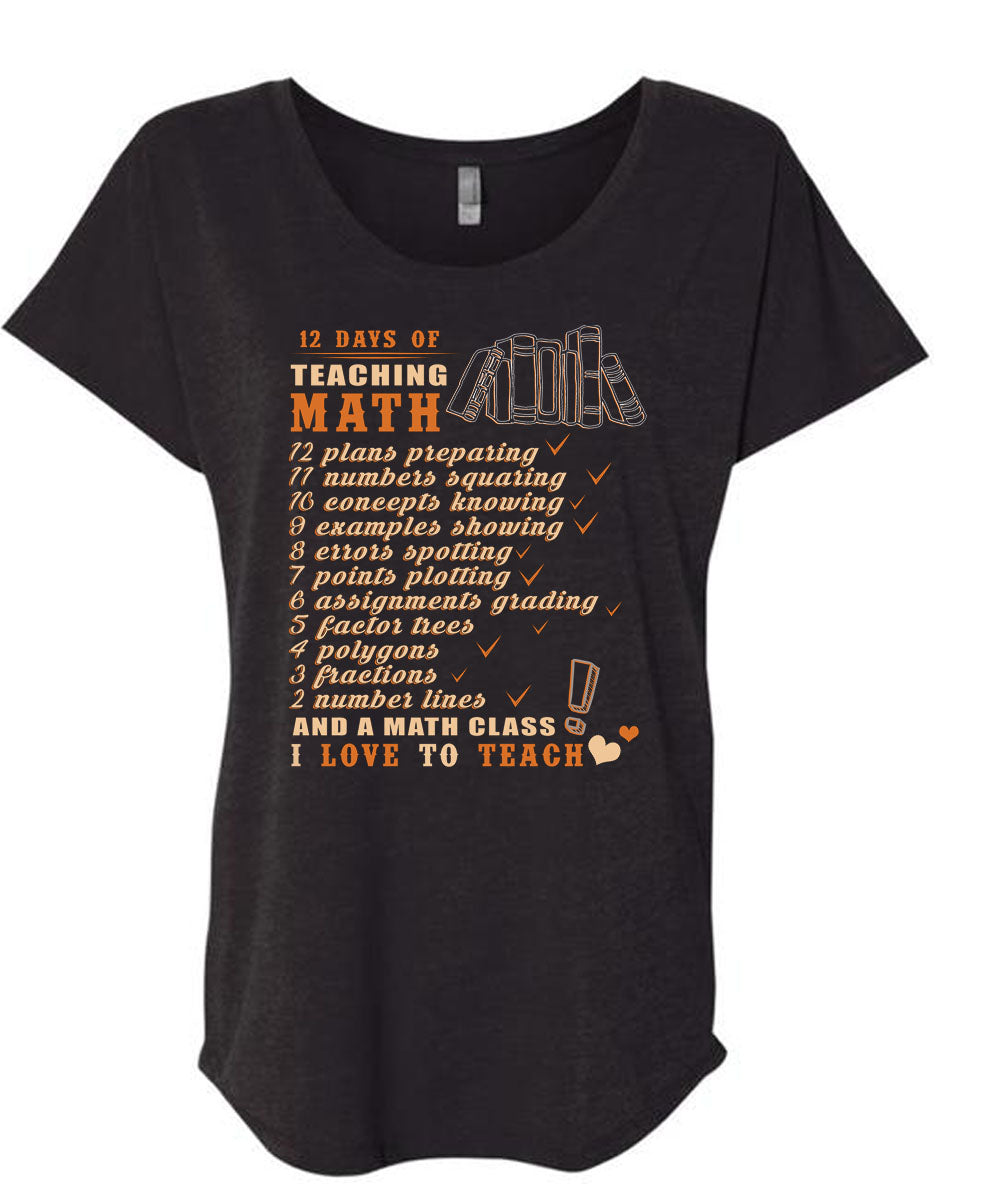 12 Days Of Teaching Math 12 Plans Preparing T Shirt, I Love To Teach T Shirt, Cool Shirt (Ladies' Triblend Dolman Sleeve)